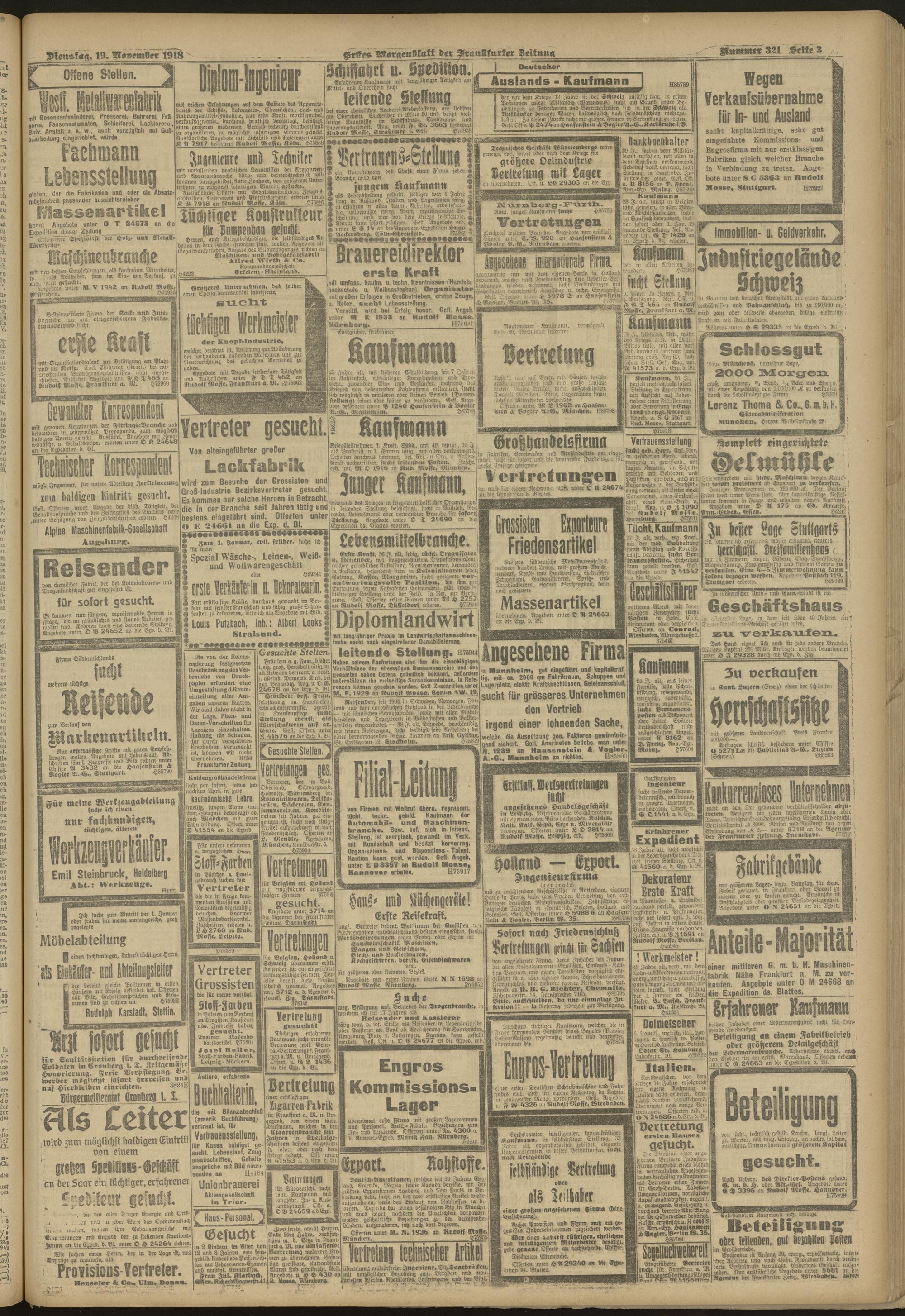 19.11.1918 = Nr. 321. Erstes Morgenblatt