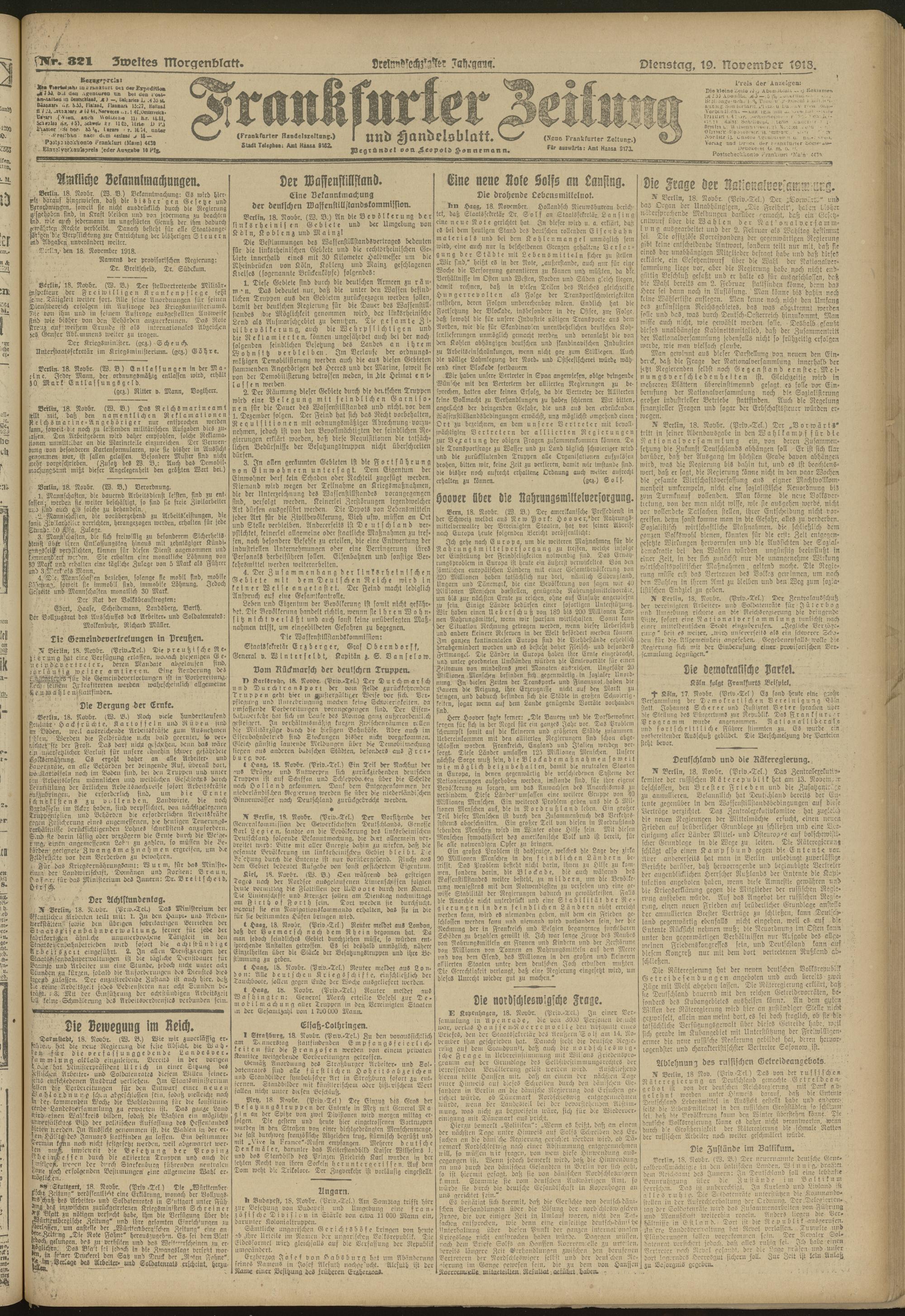 19.11.1918 = Nr. 321. Zweites Morgenblatt