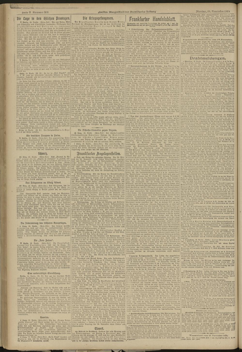 19.11.1918 = Nr. 321. Zweites Morgenblatt