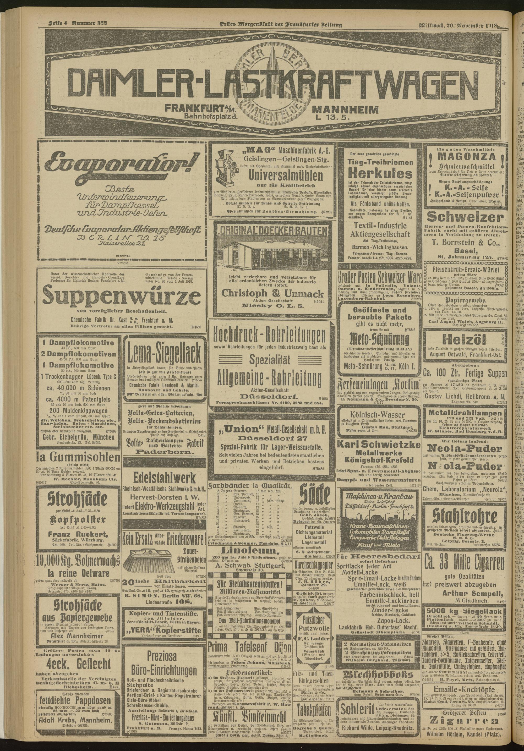 20.11.1918 = Nr. 322. Erstes Morgenblatt