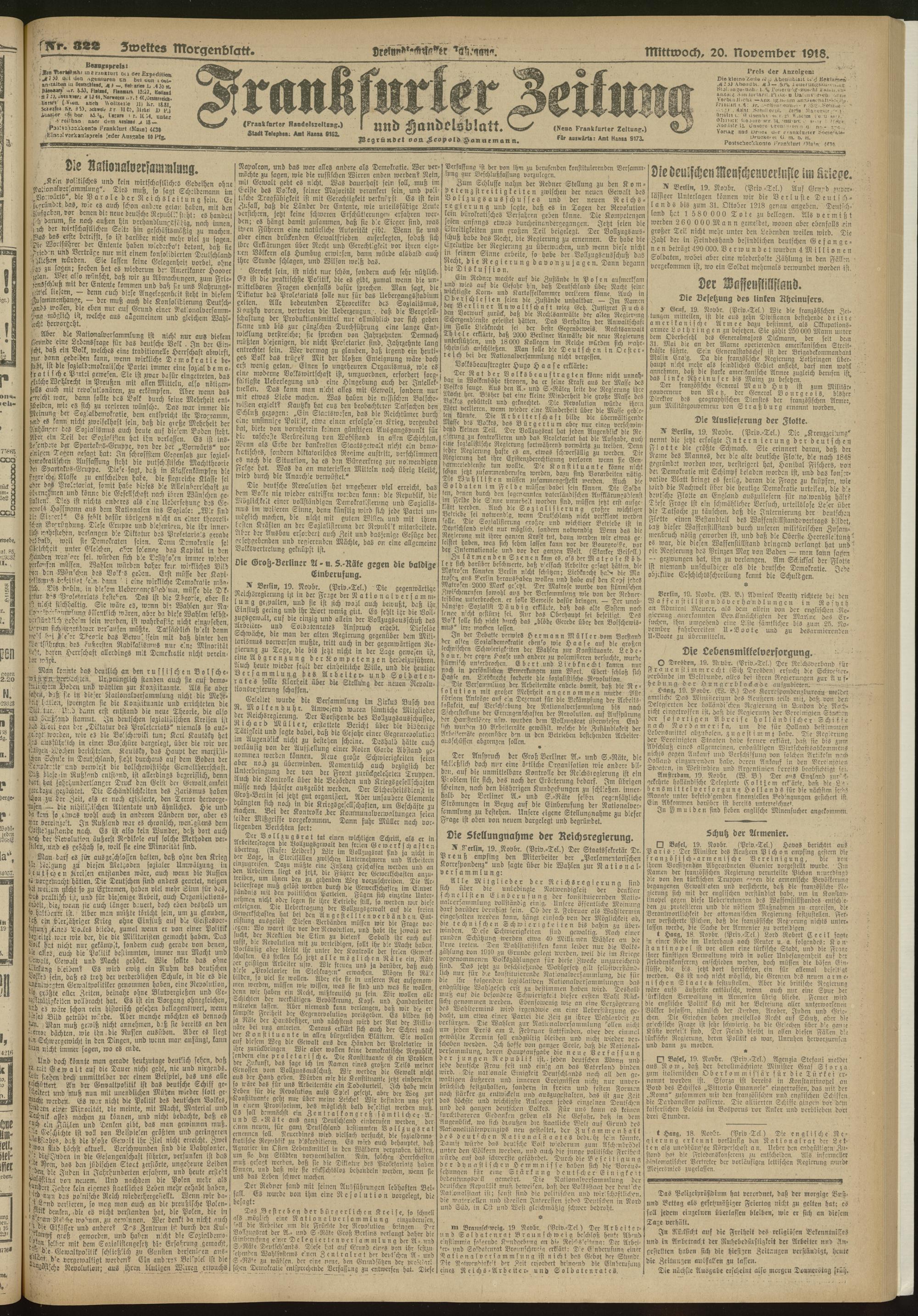20.11.1918 = Nr. 322. Zweites Morgenblatt