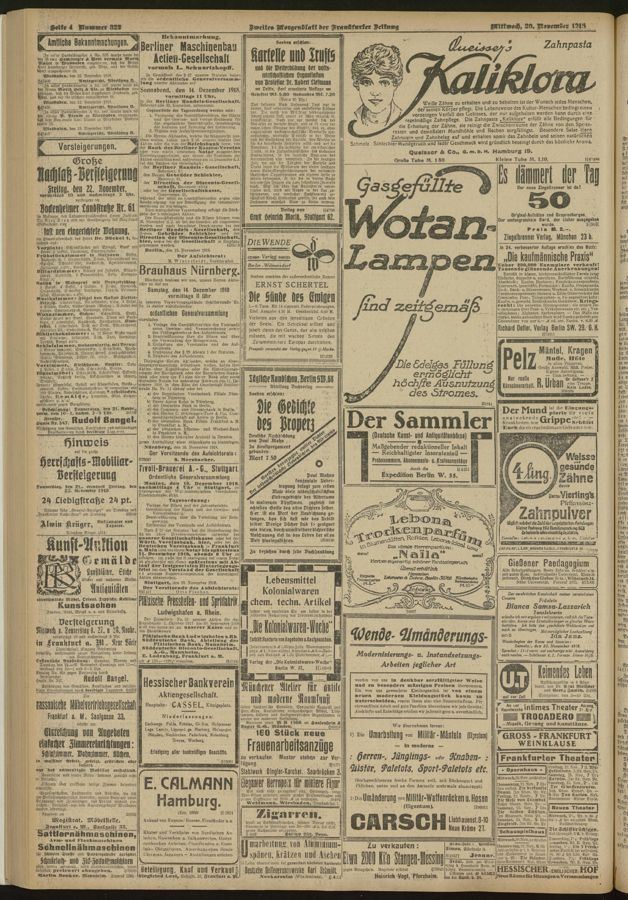 20.11.1918 = Nr. 322. Zweites Morgenblatt