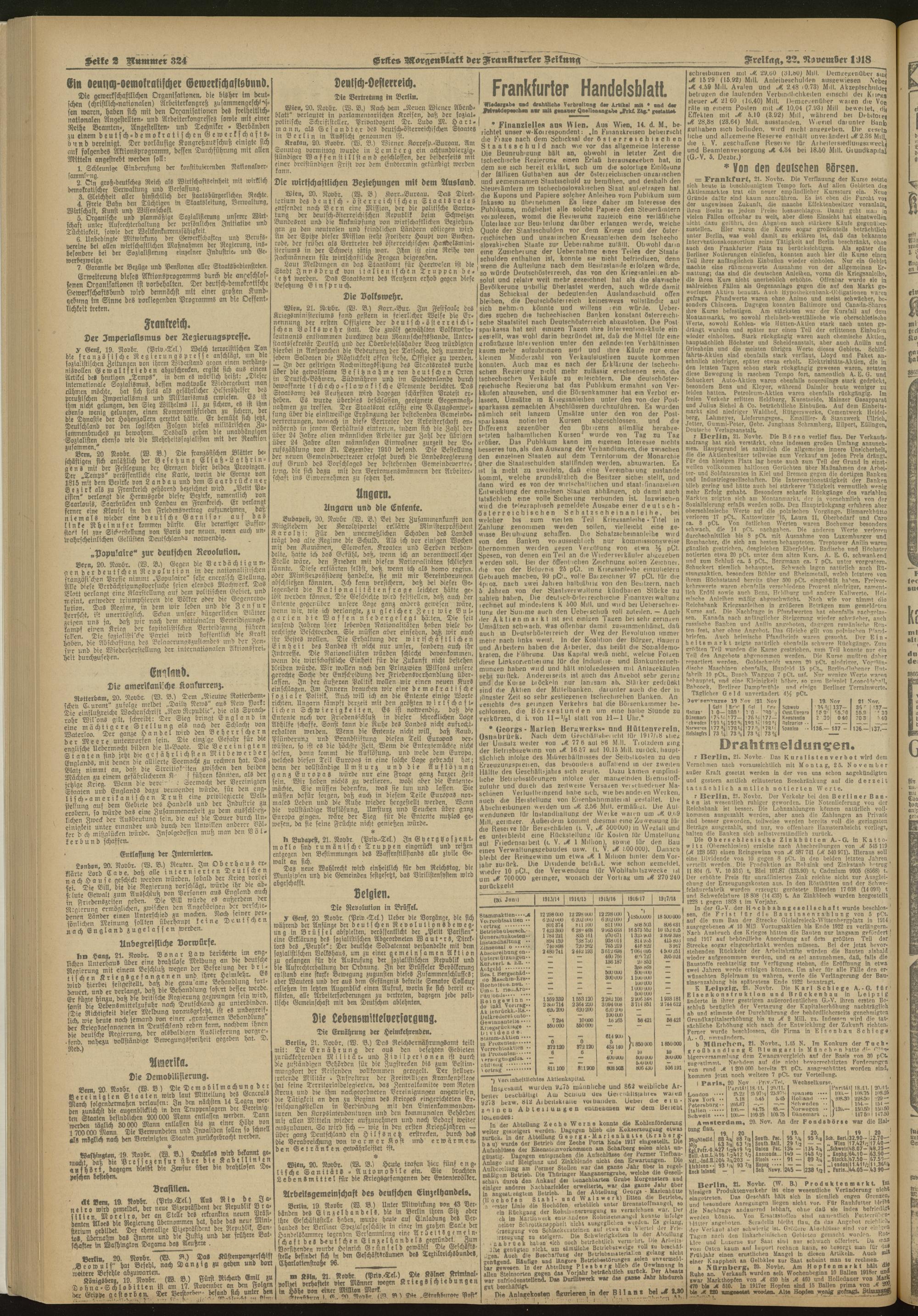 22.11.1918 = Nr. 324. Erstes Morgenblatt