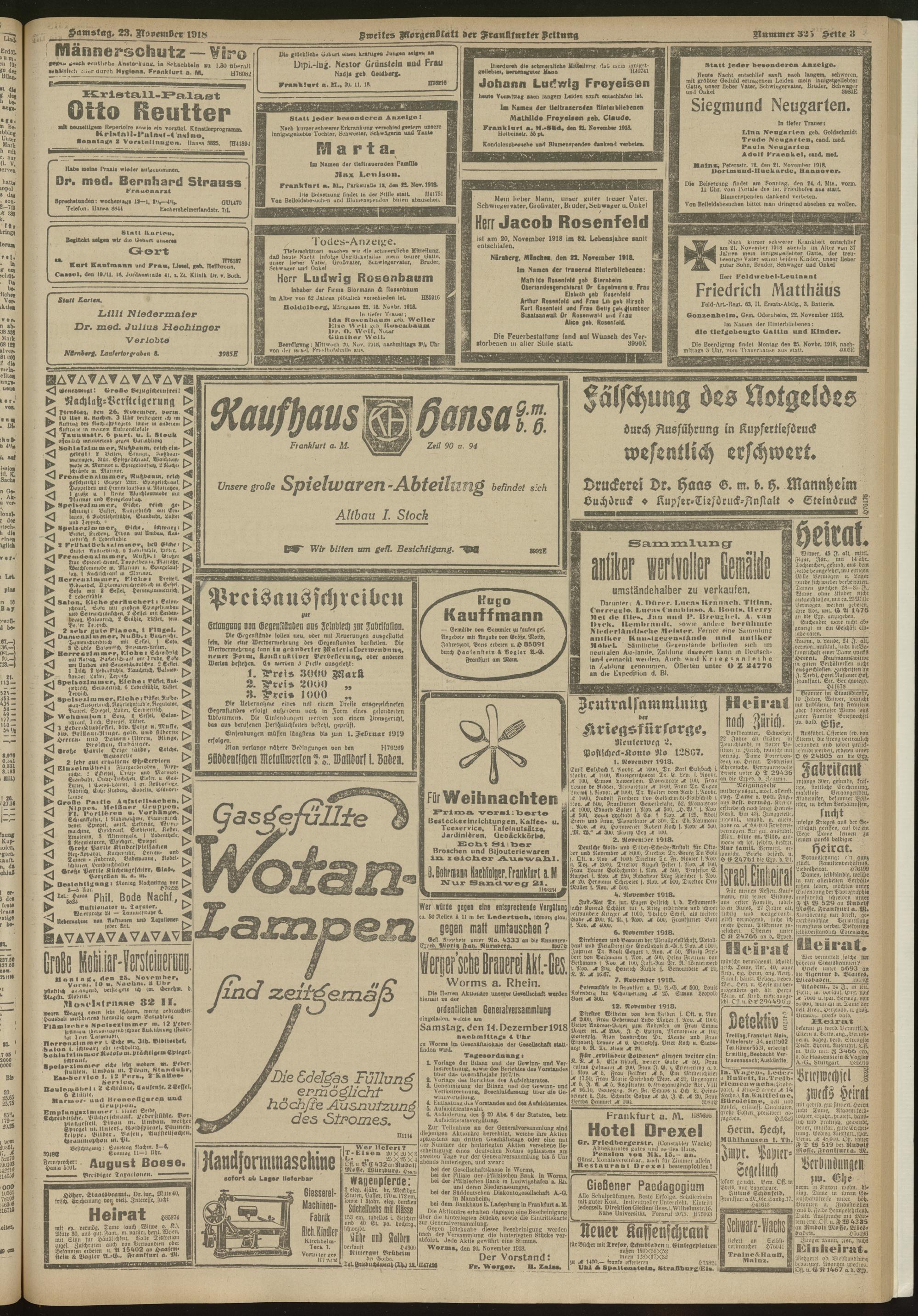 23.11.1918 = Nr. 325. Zweites Morgenblatt