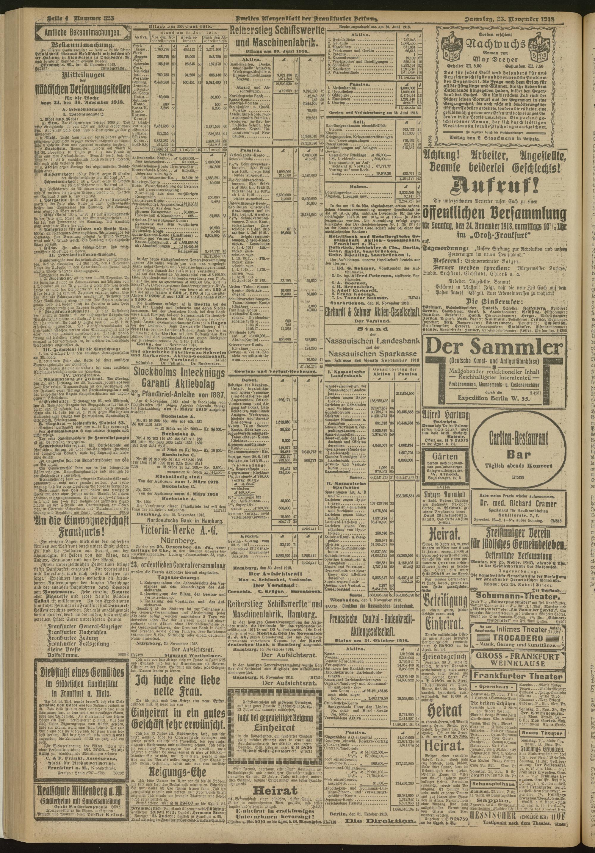 23.11.1918 = Nr. 325. Zweites Morgenblatt