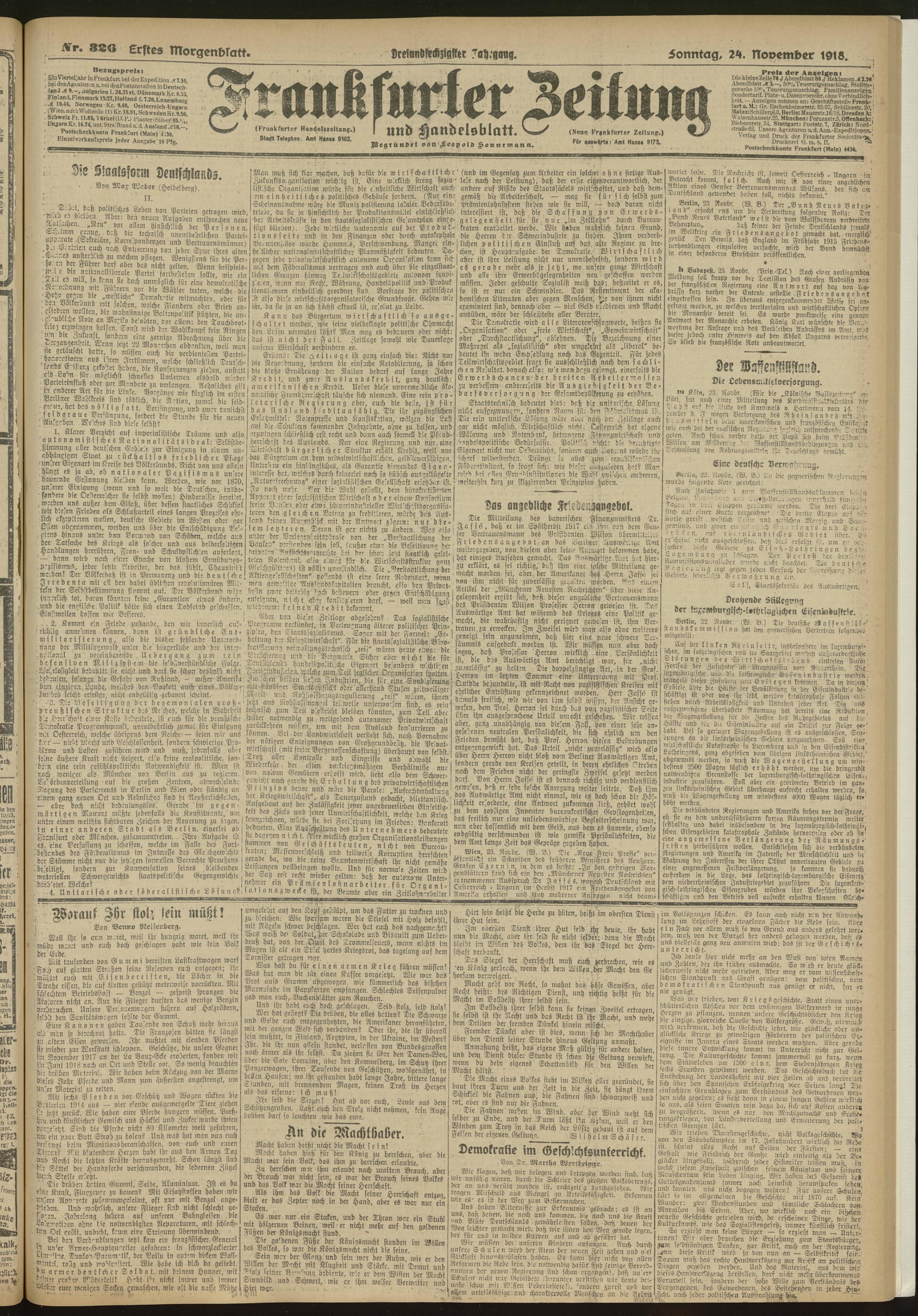 24.11.1918 = Nr. 326. Erstes Morgenblatt