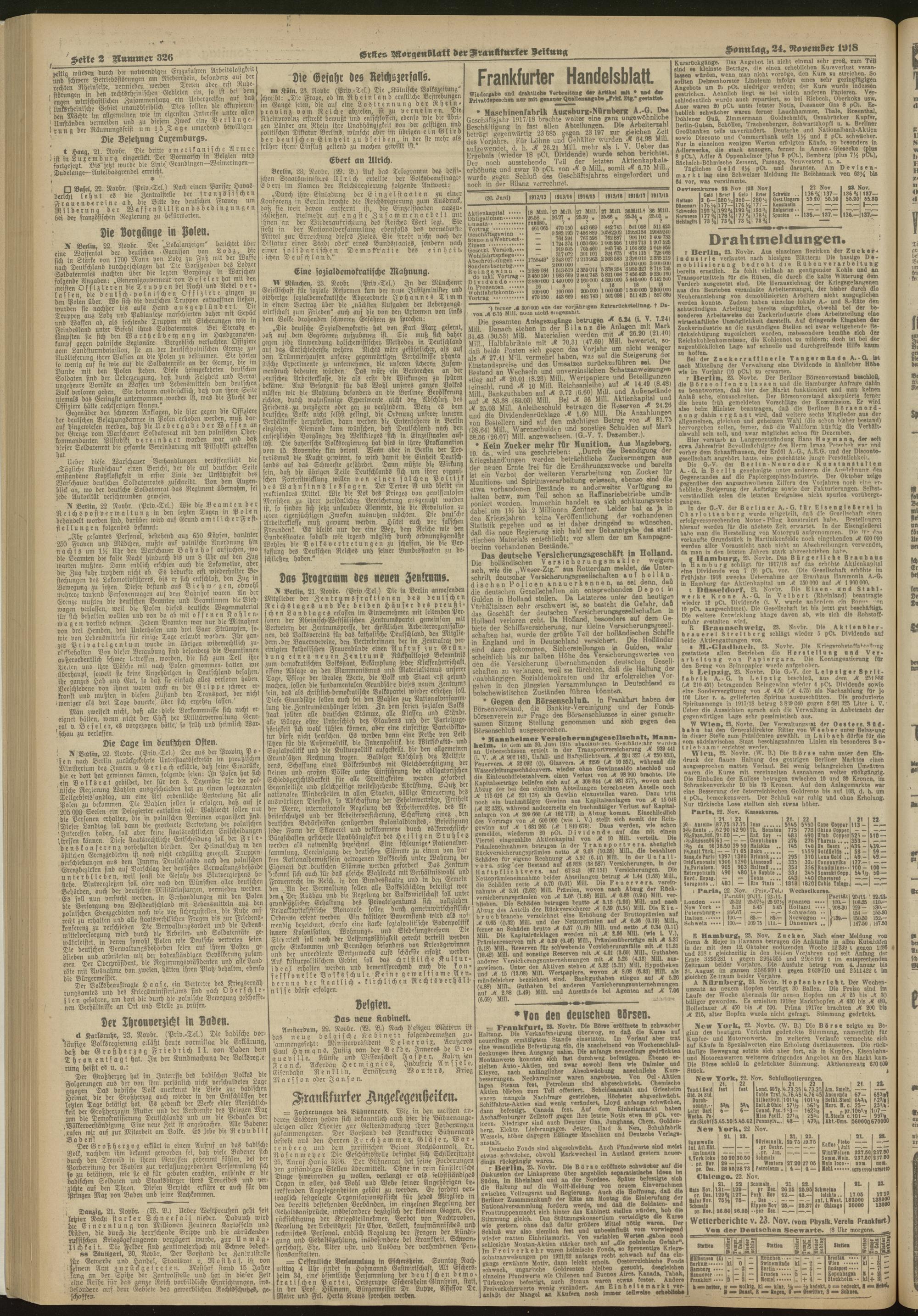 24.11.1918 = Nr. 326. Erstes Morgenblatt