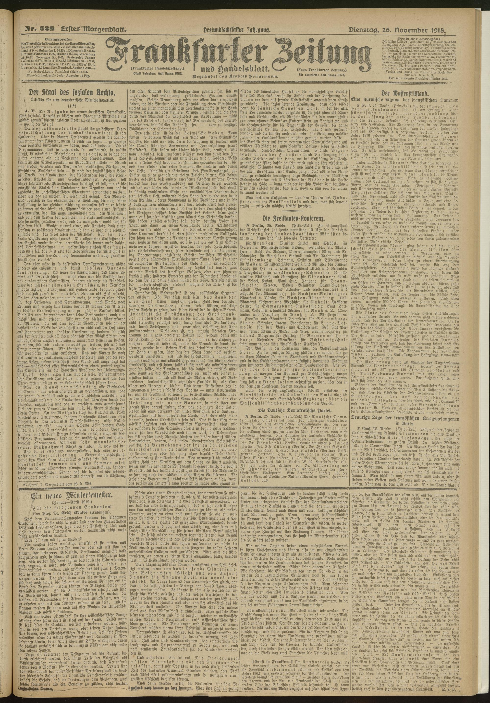 26.11.1918 = Nr. 328. Erstes Morgenblatt