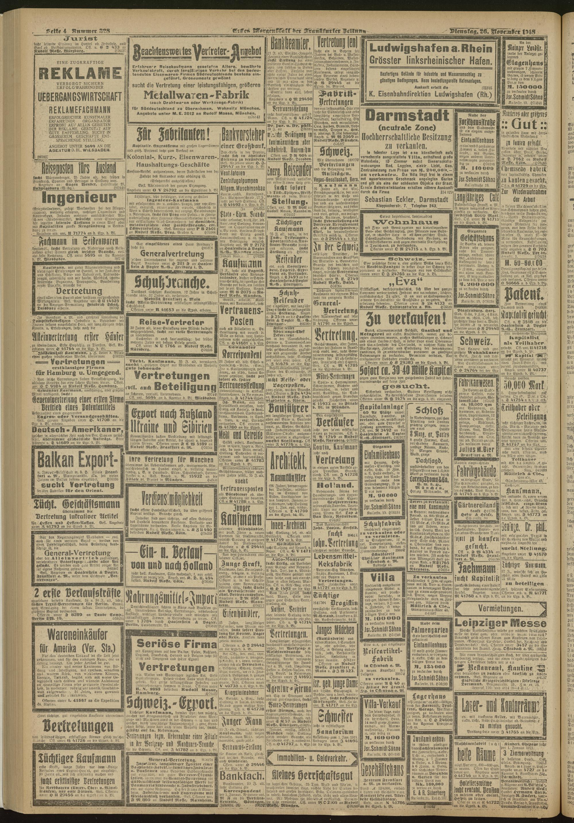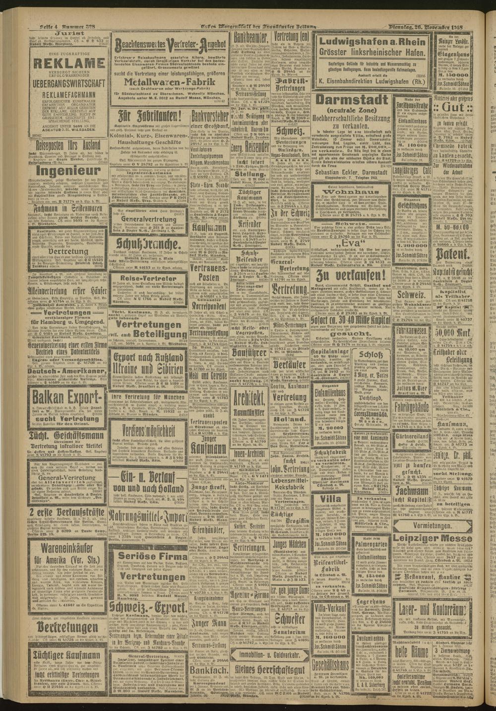 26.11.1918 = Nr. 328. Erstes Morgenblatt