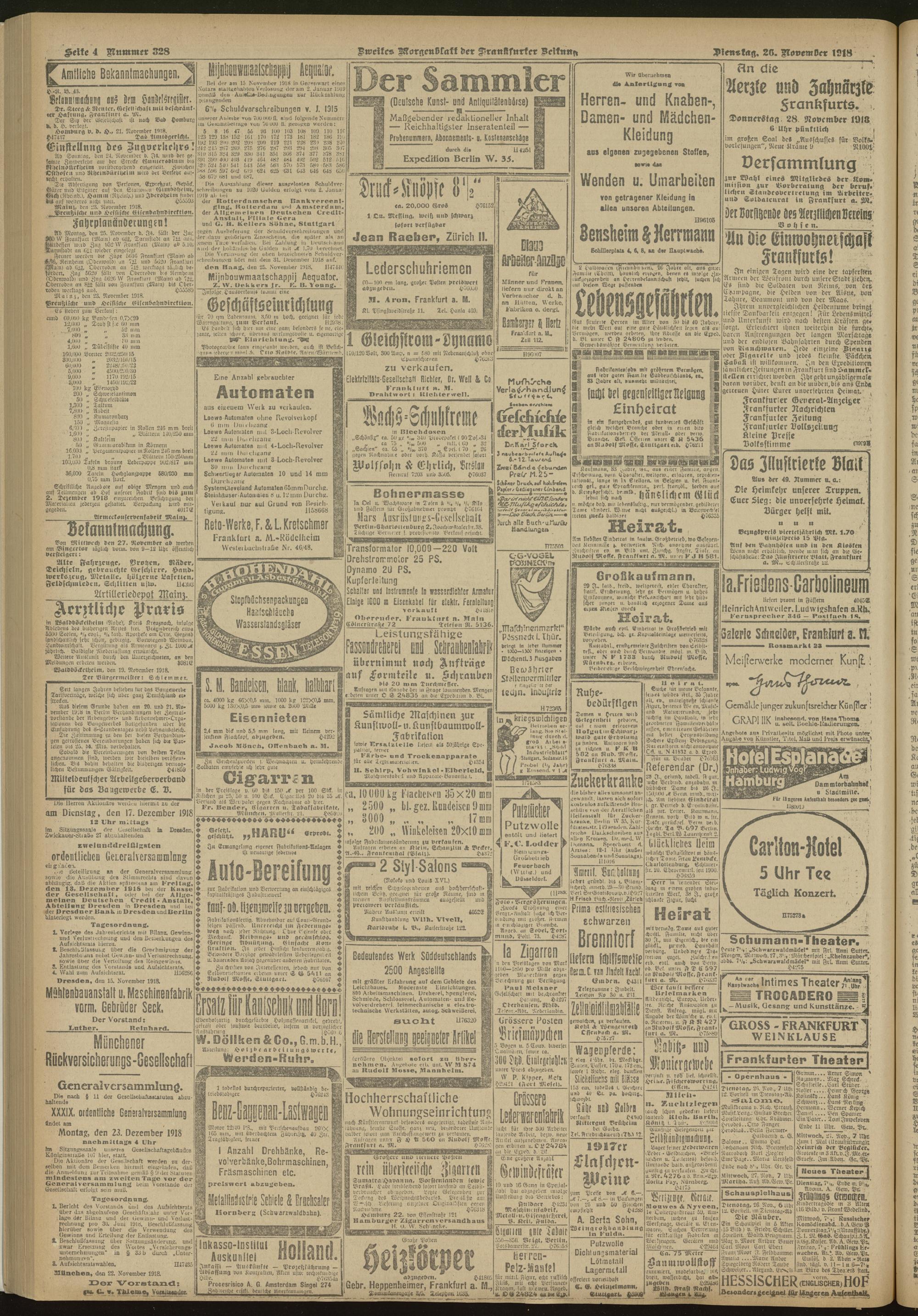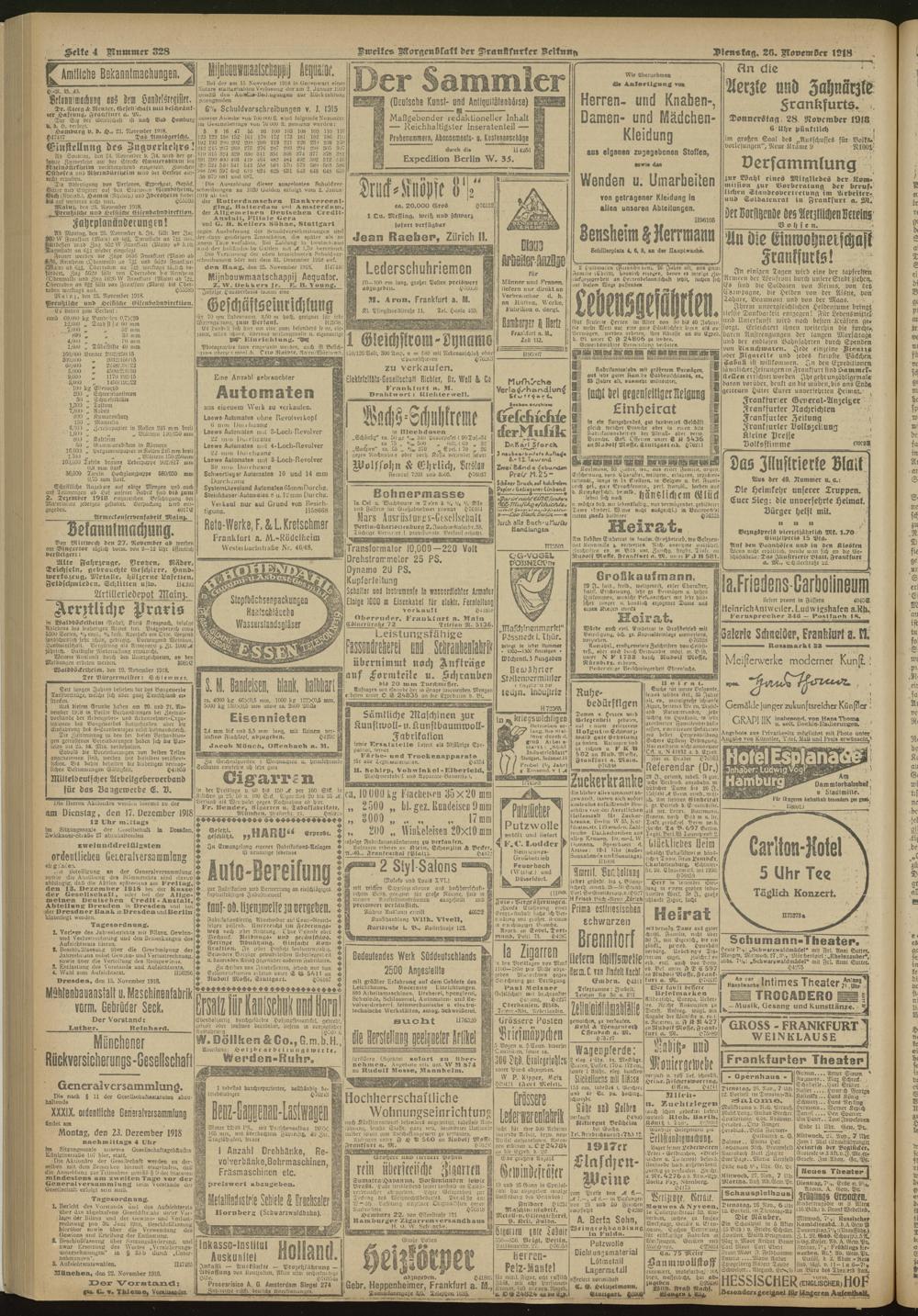 26.11.1918 = Nr. 328. Zweites Morgenblatt