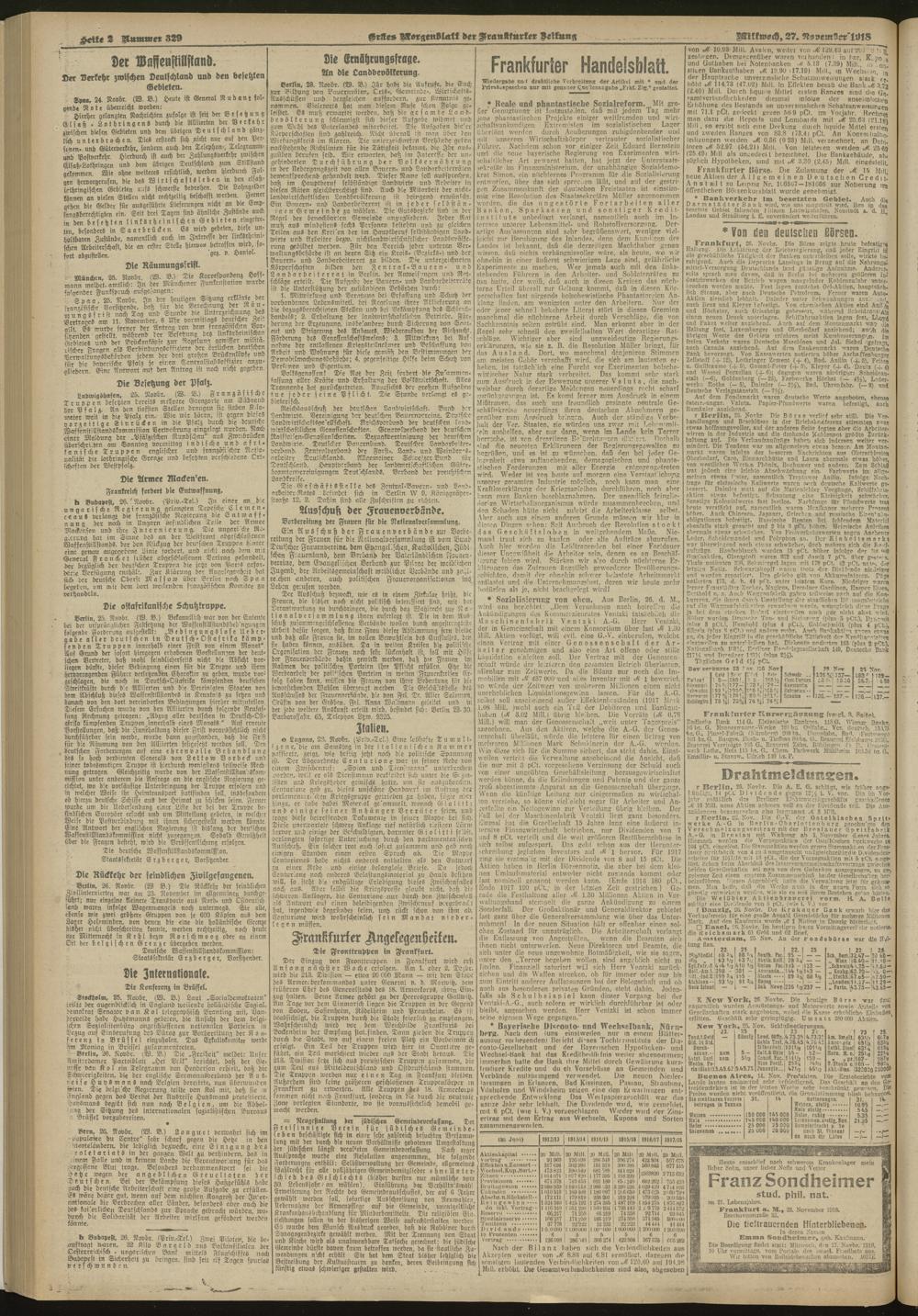 27.11.1918 = Nr. 329. Erstes Morgenblatt