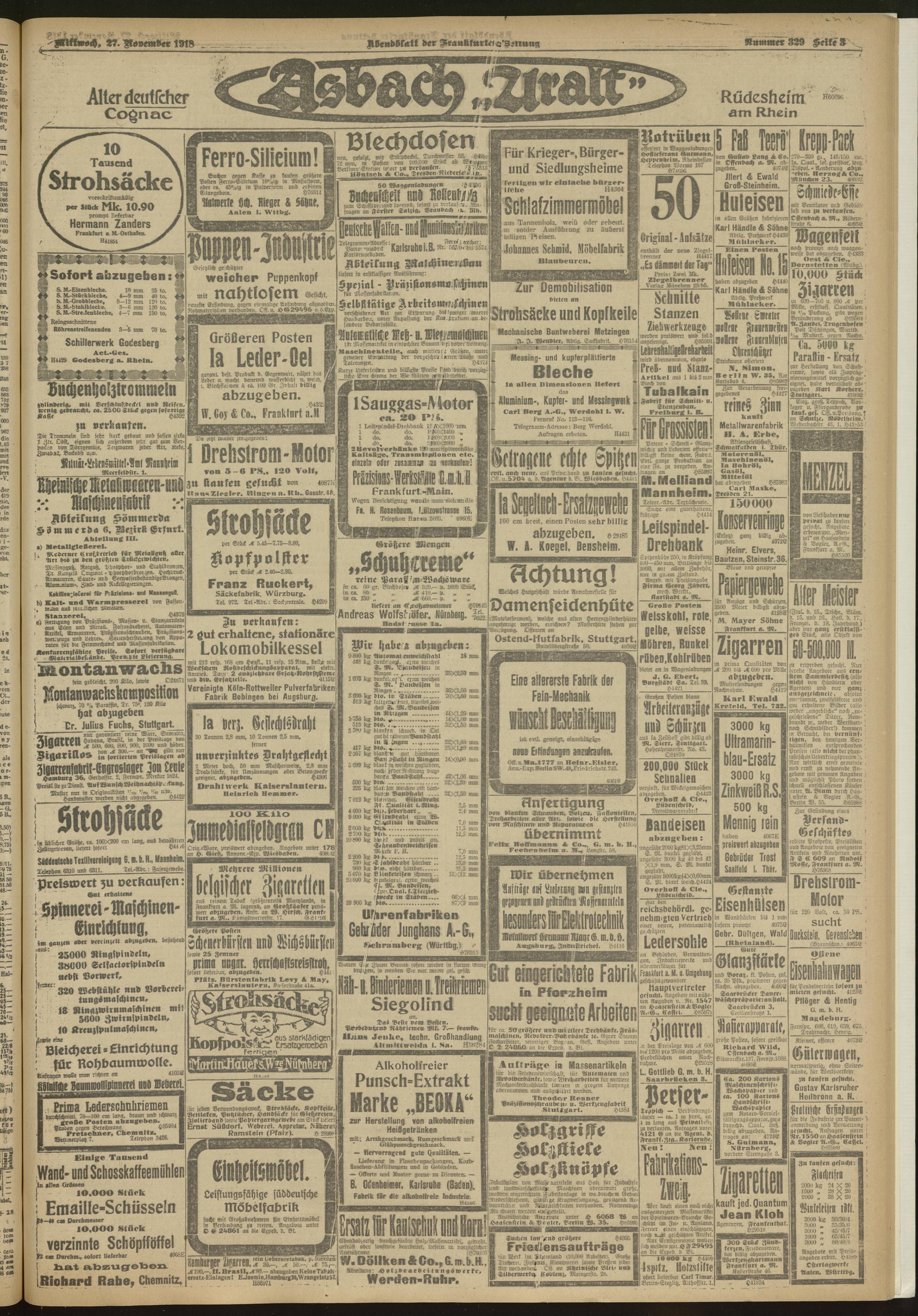 27.11.1918 = Nr. 329. Abendblatt
