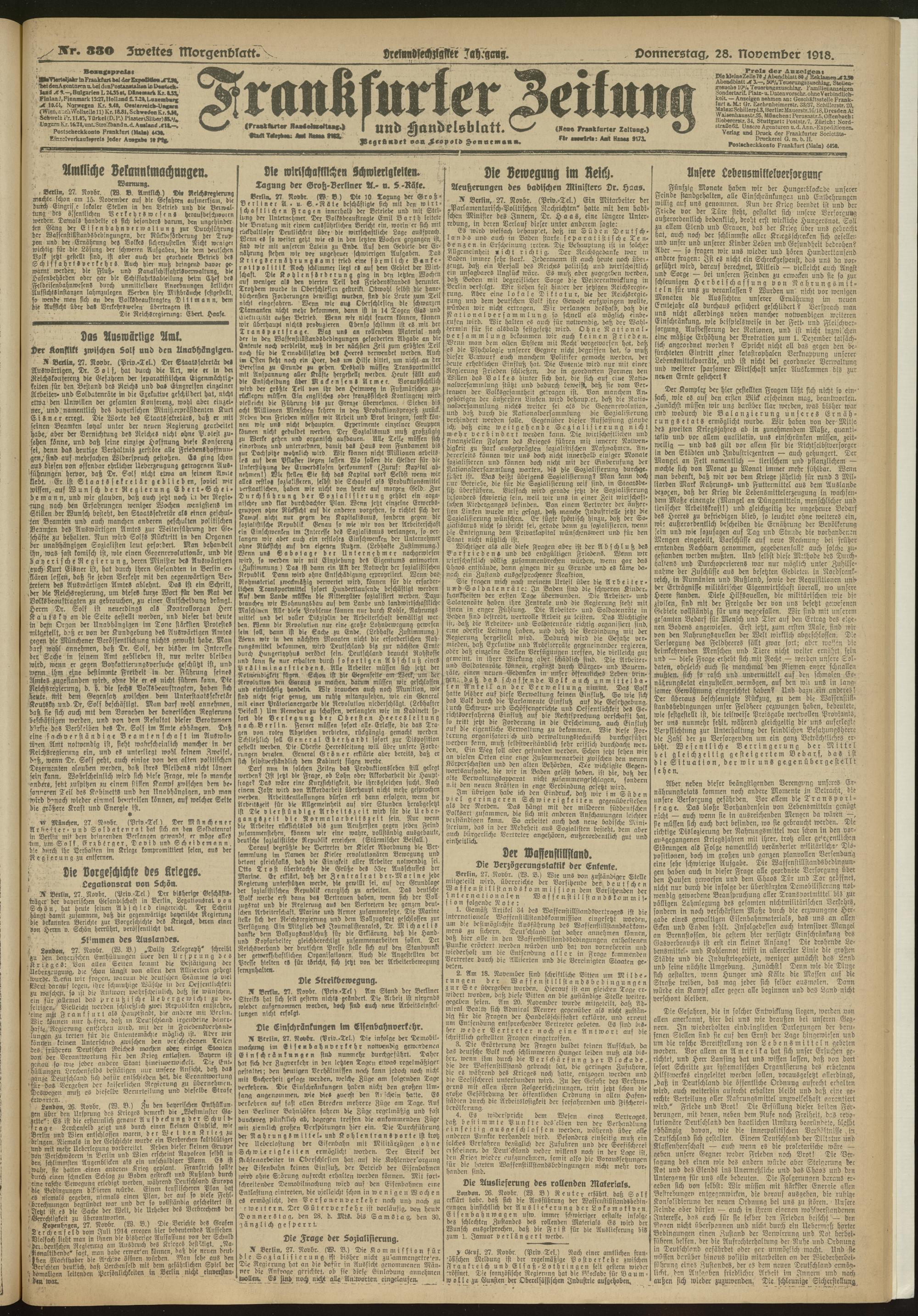 28.11.1918 = Nr. 330. Zweites Morgenblatt