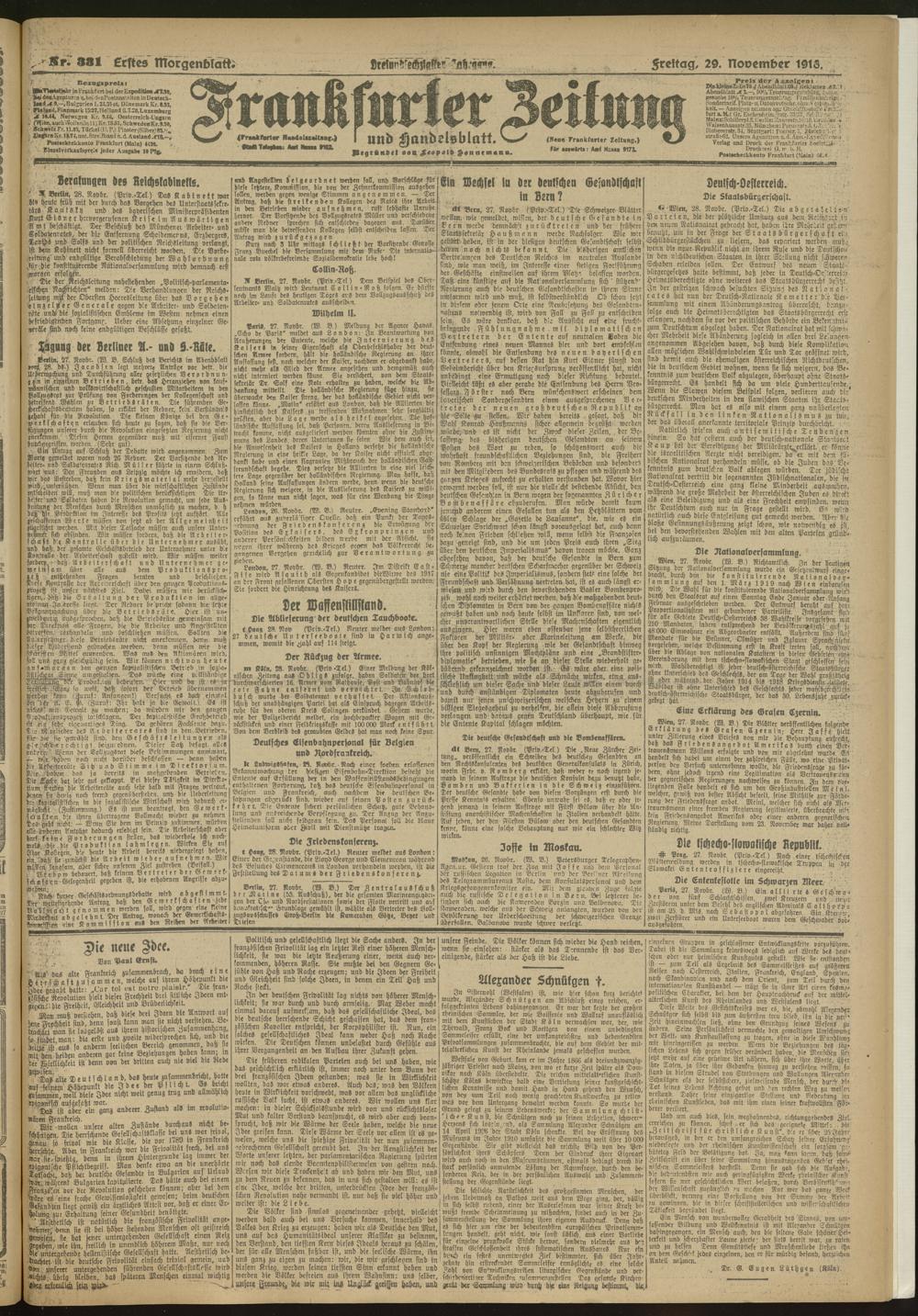 29.11.1918 = Nr. 331. Erstes Morgenblatt