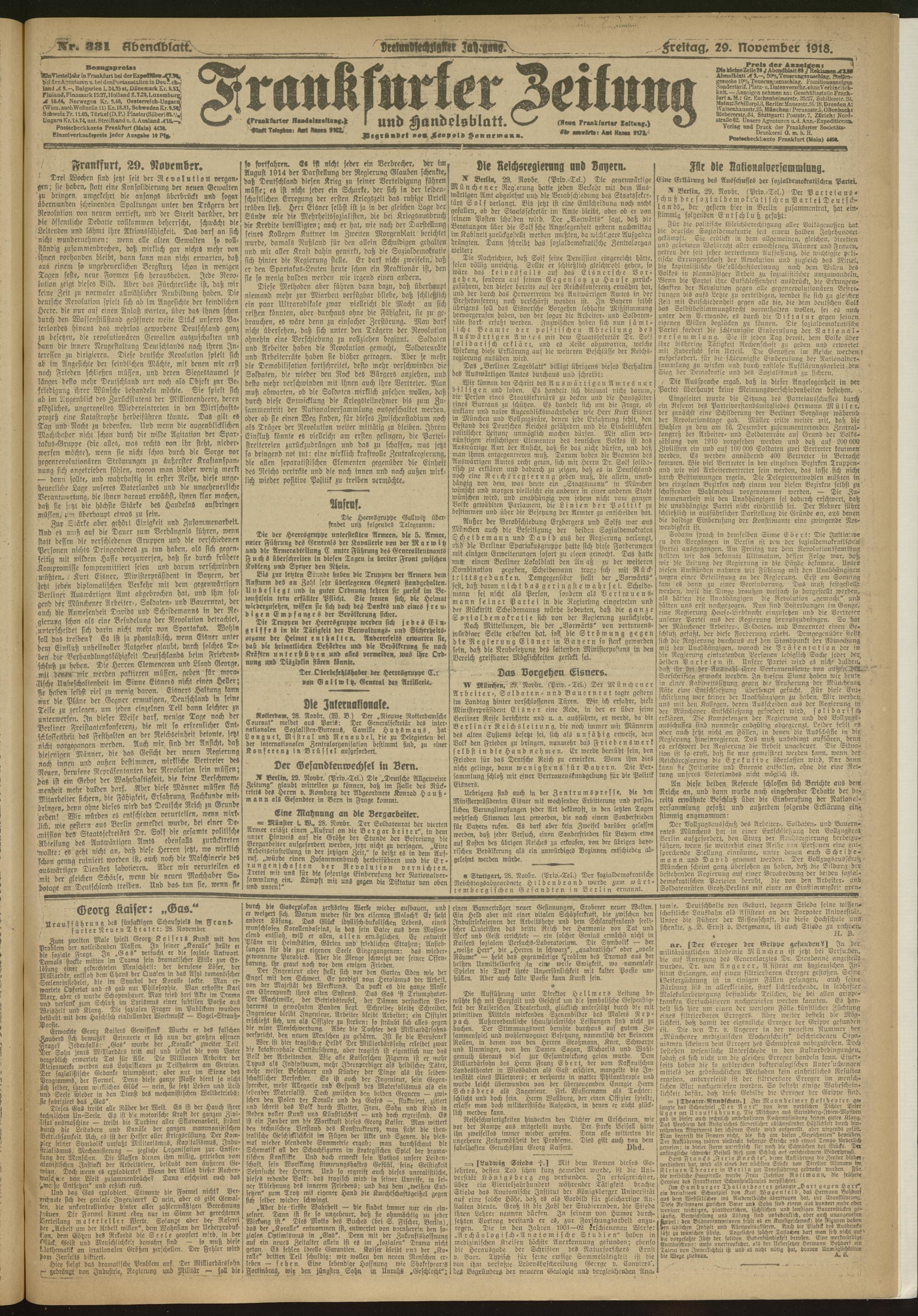 29.11.1918 = Nr. 331. Abendblatt