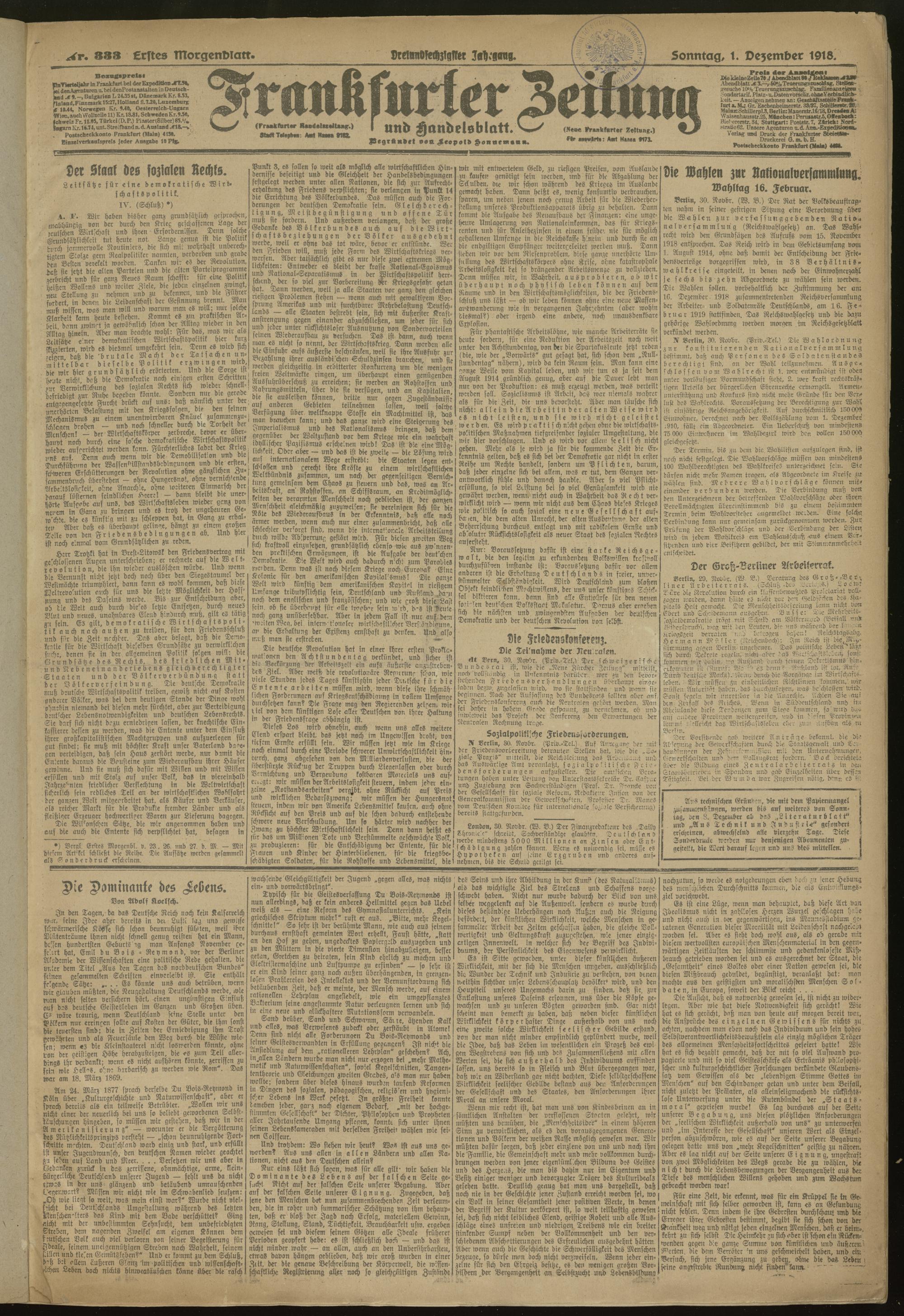 01.12.1918 = 333. Erstes Morgenblatt