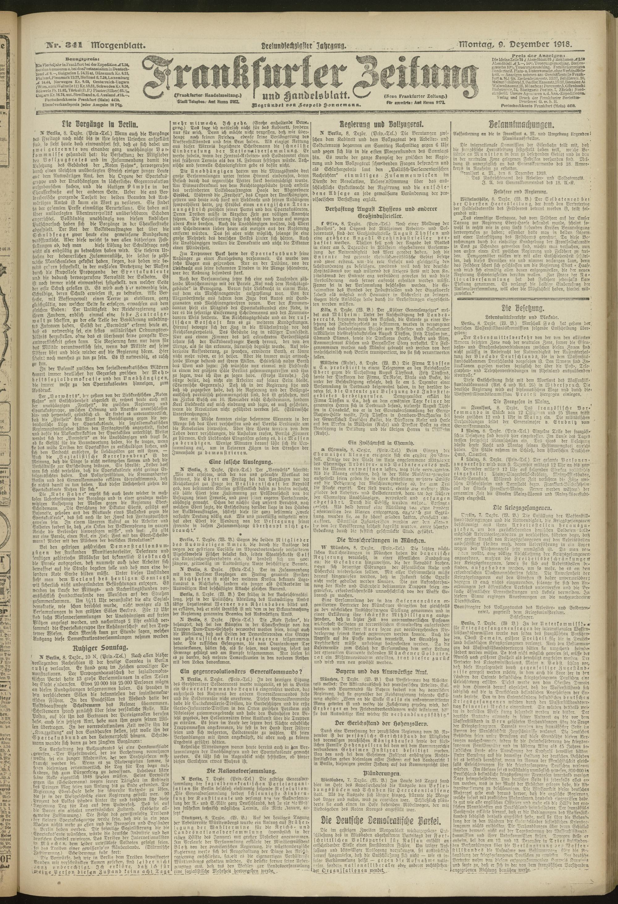 09.12.1918 = 341. Morgenblatt