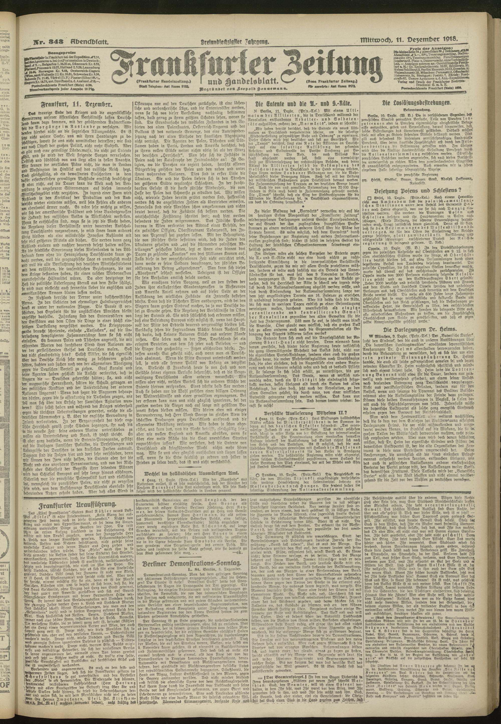 11.12.1918 = 343. Abendblatt