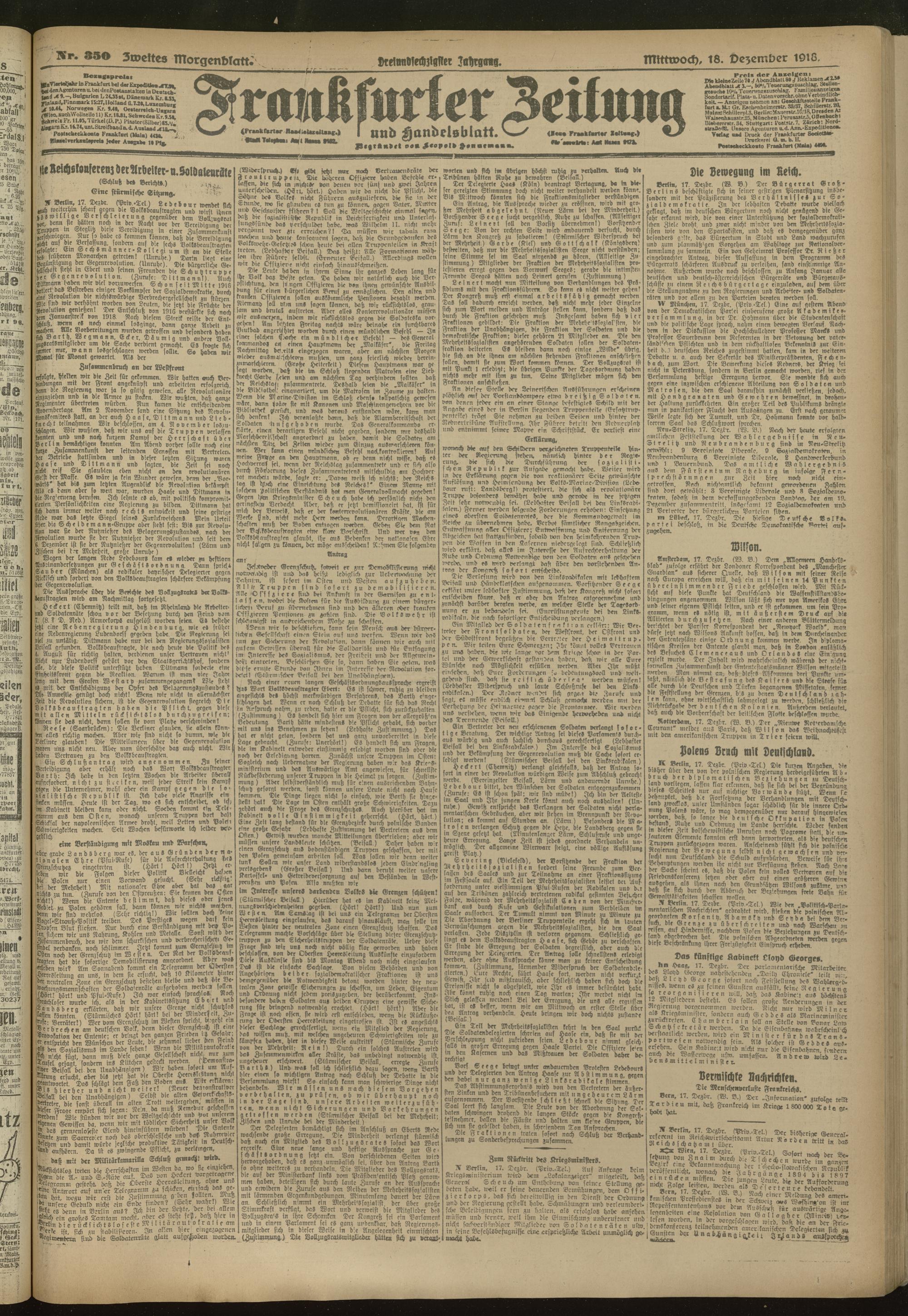 18.12.1918 = 350. Zweites Morgenblatt