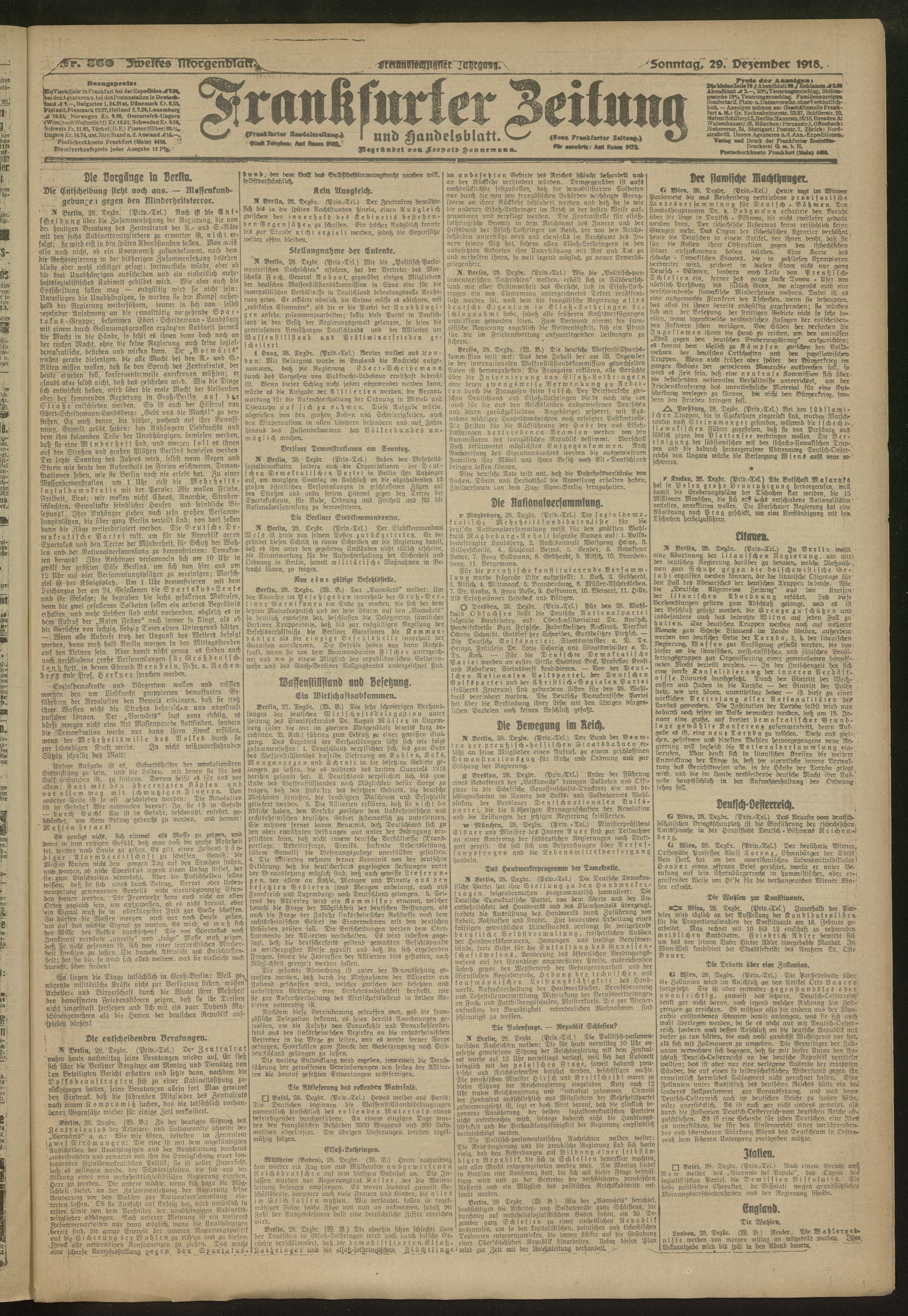 29.12.1918 = 361. Zweites Morgenblatt