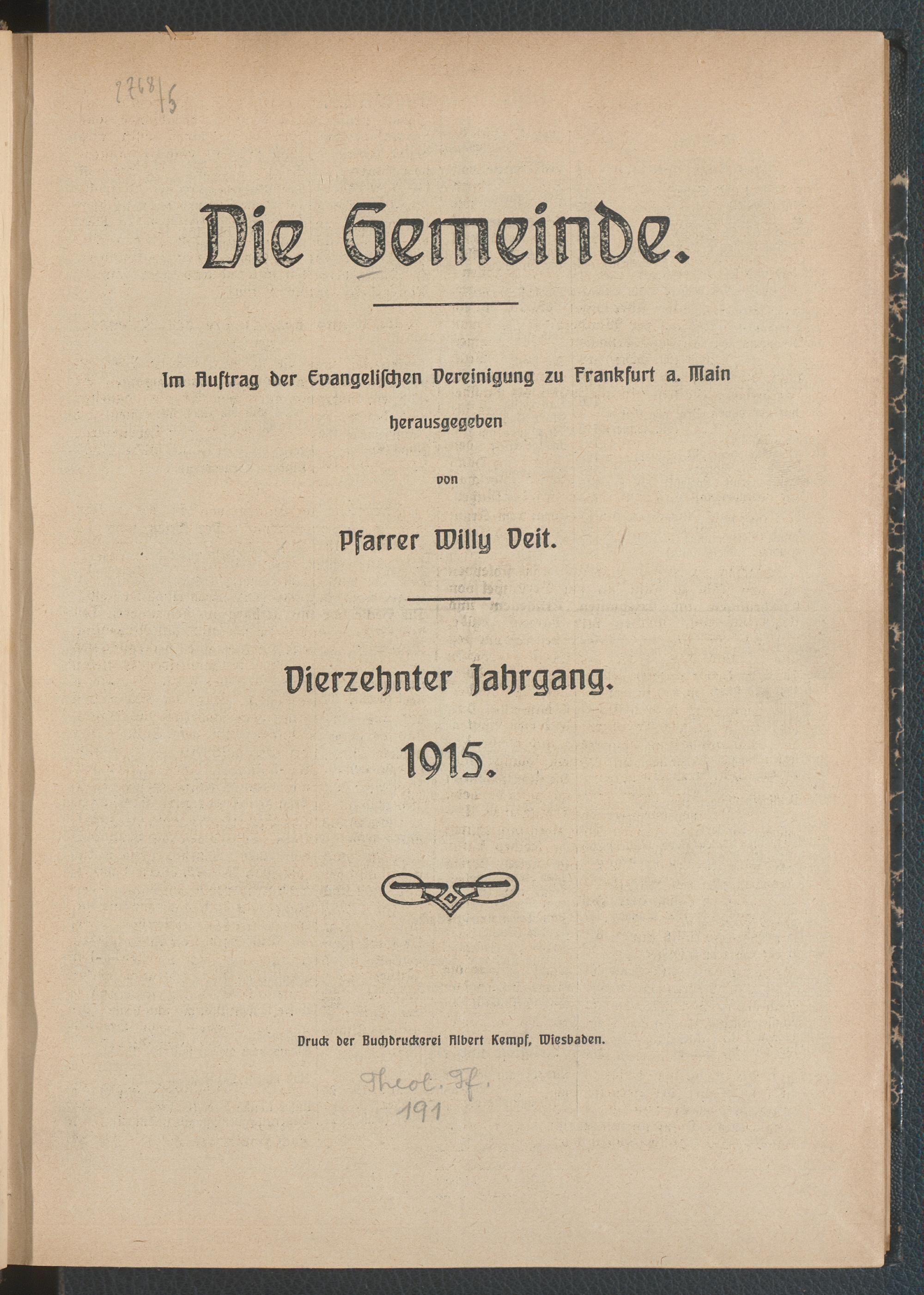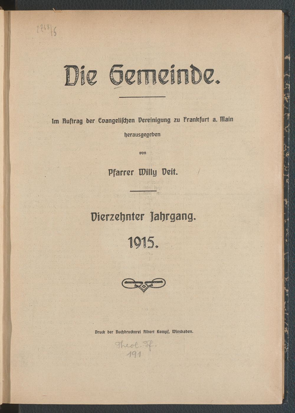 Inhalts-Verzeichnis 1915