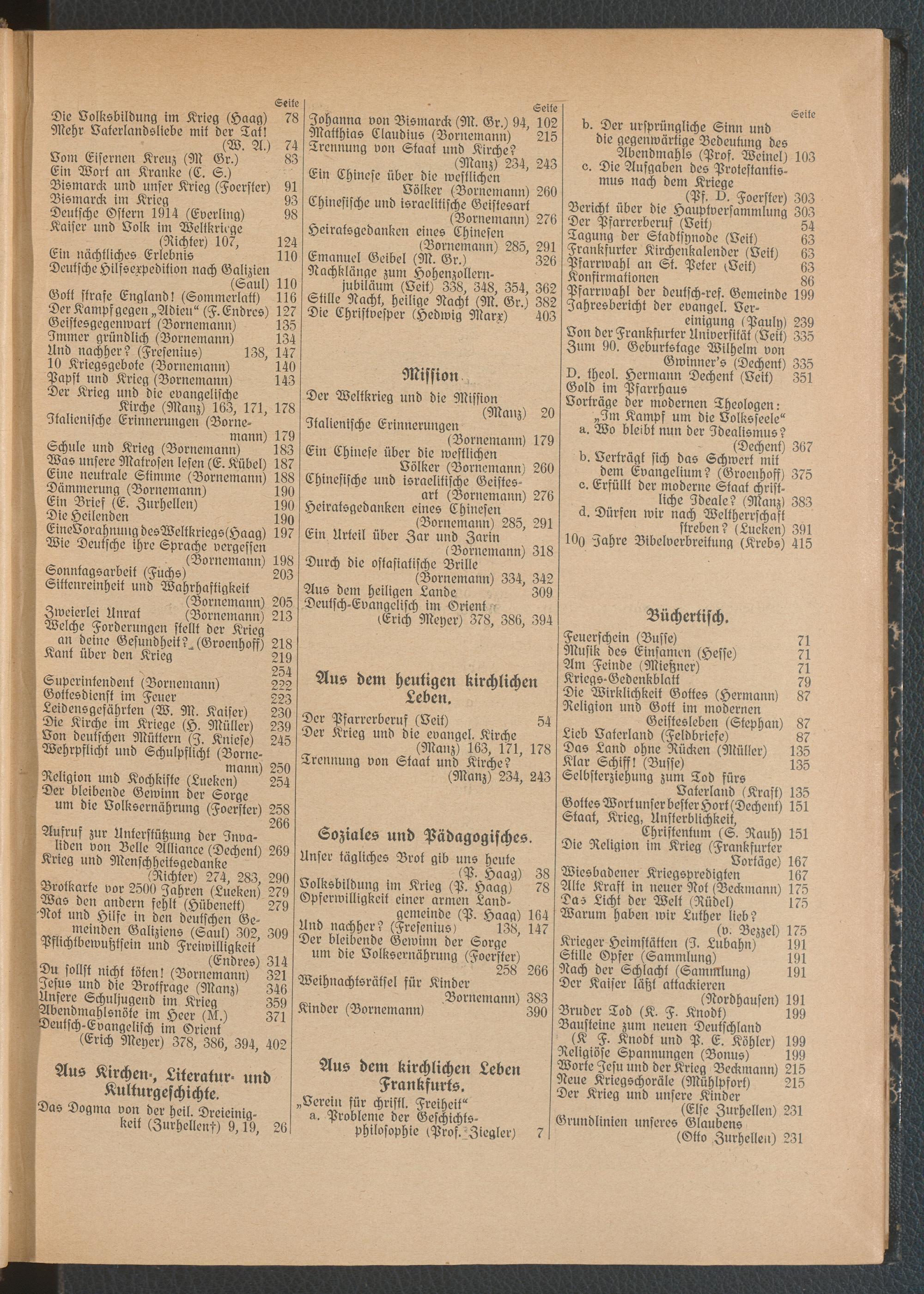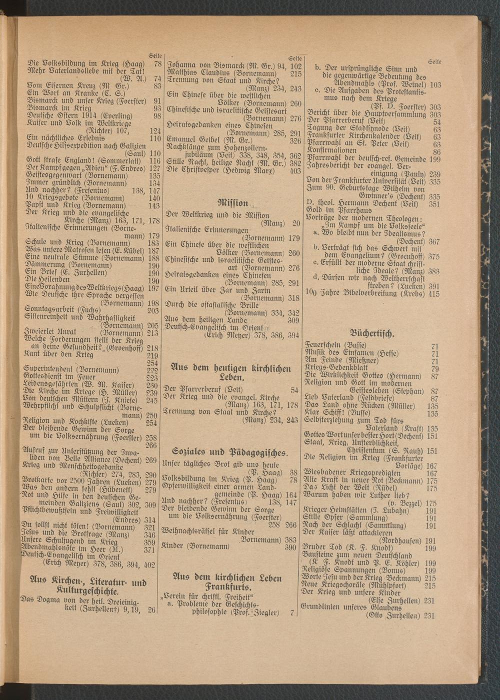 Inhalts-Verzeichnis 1915