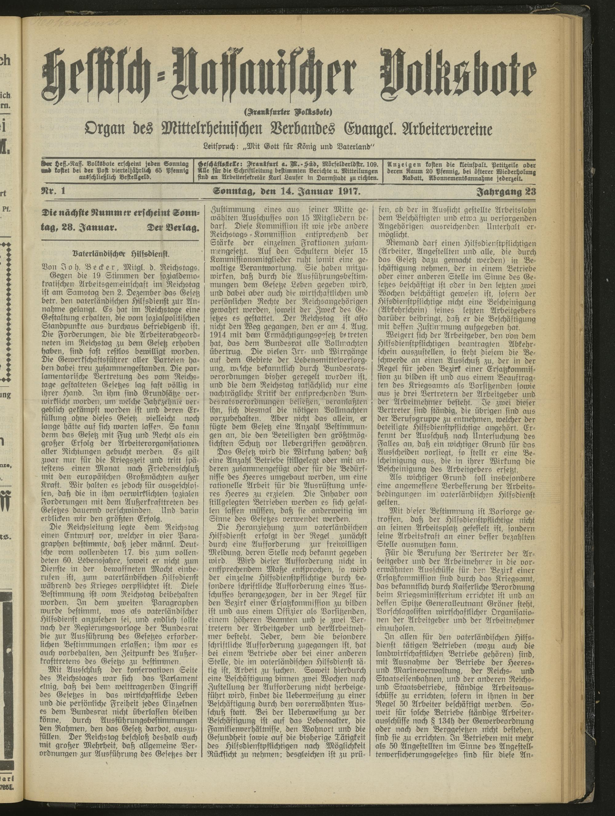 14.01.1917 = Nr. 1