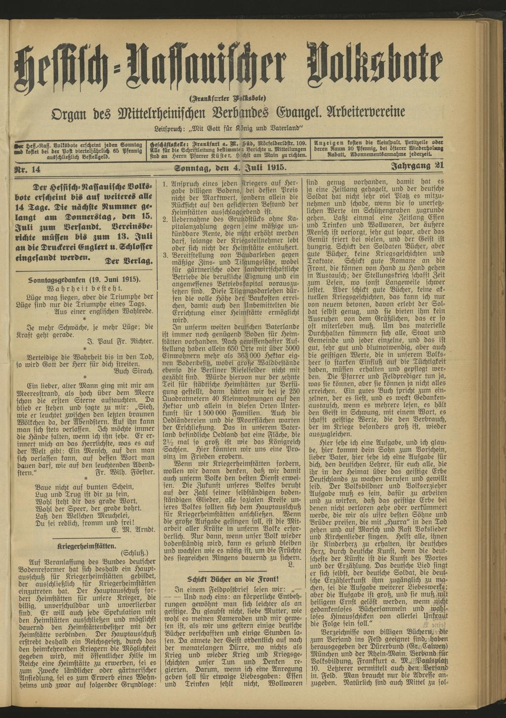 Regionale Zeitungen aus der Zeit des Ersten Weltkrieges