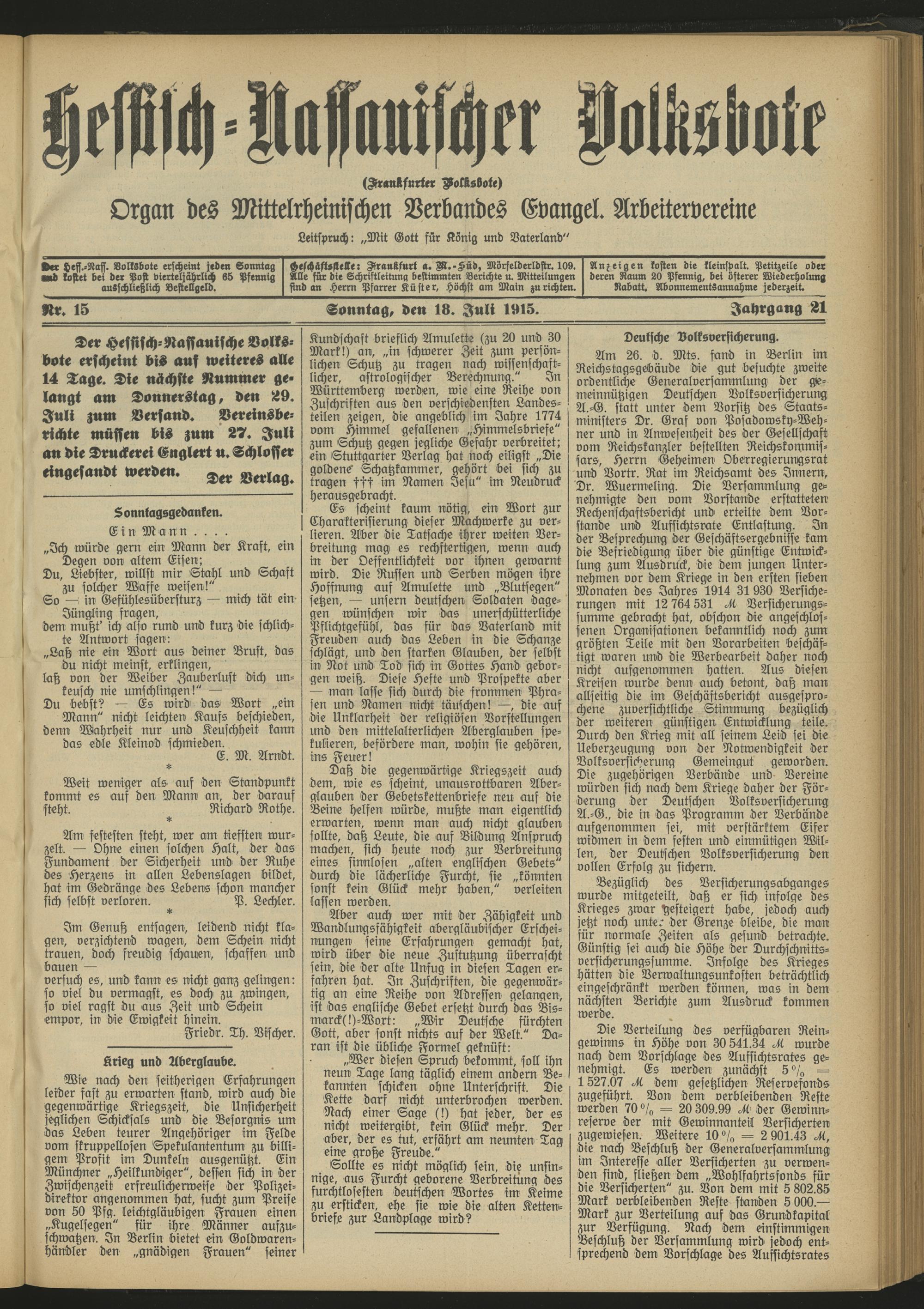 Regionale Zeitungen aus der Zeit des Ersten Weltkrieges