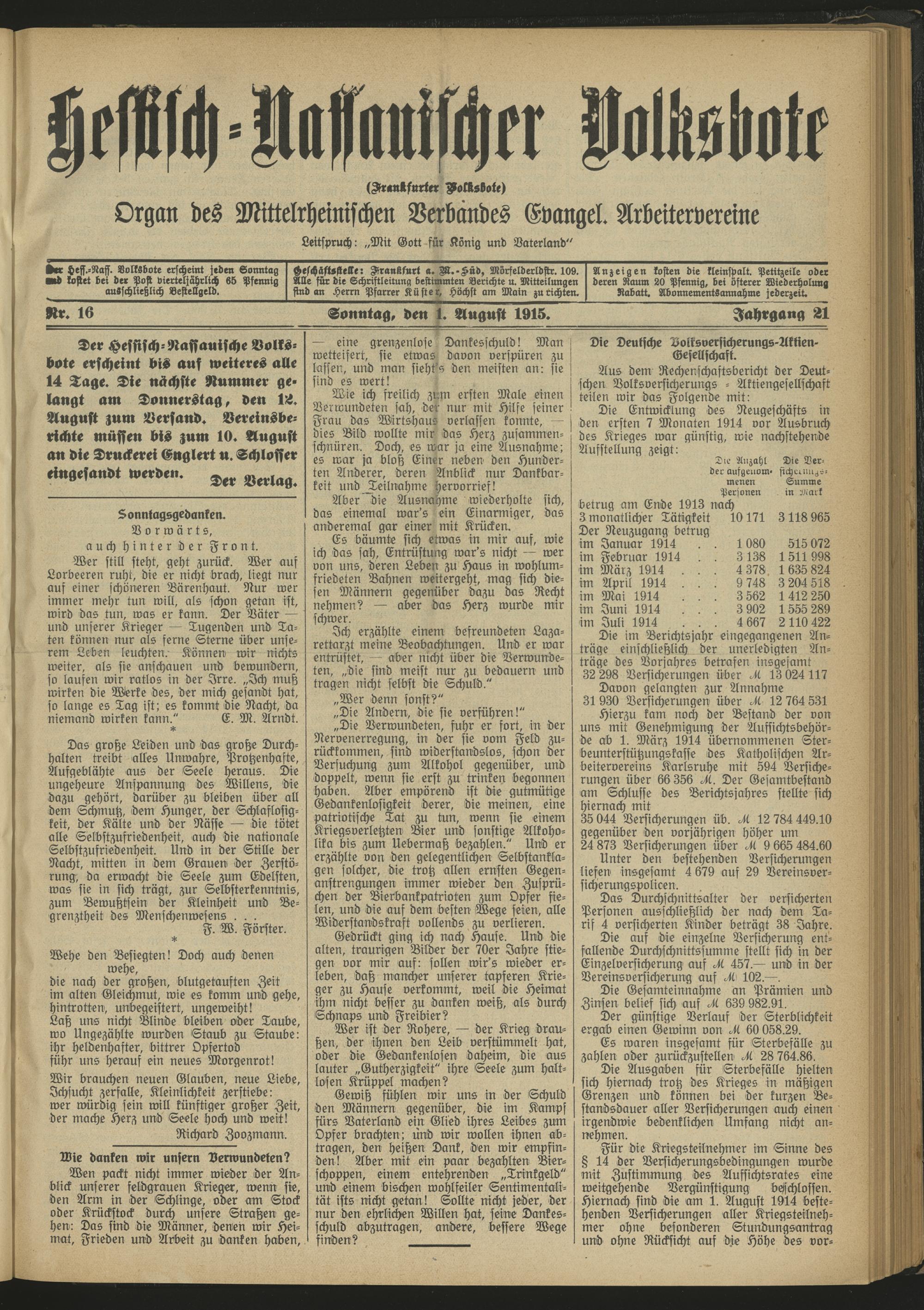 Regionale Zeitungen aus der Zeit des Ersten Weltkrieges