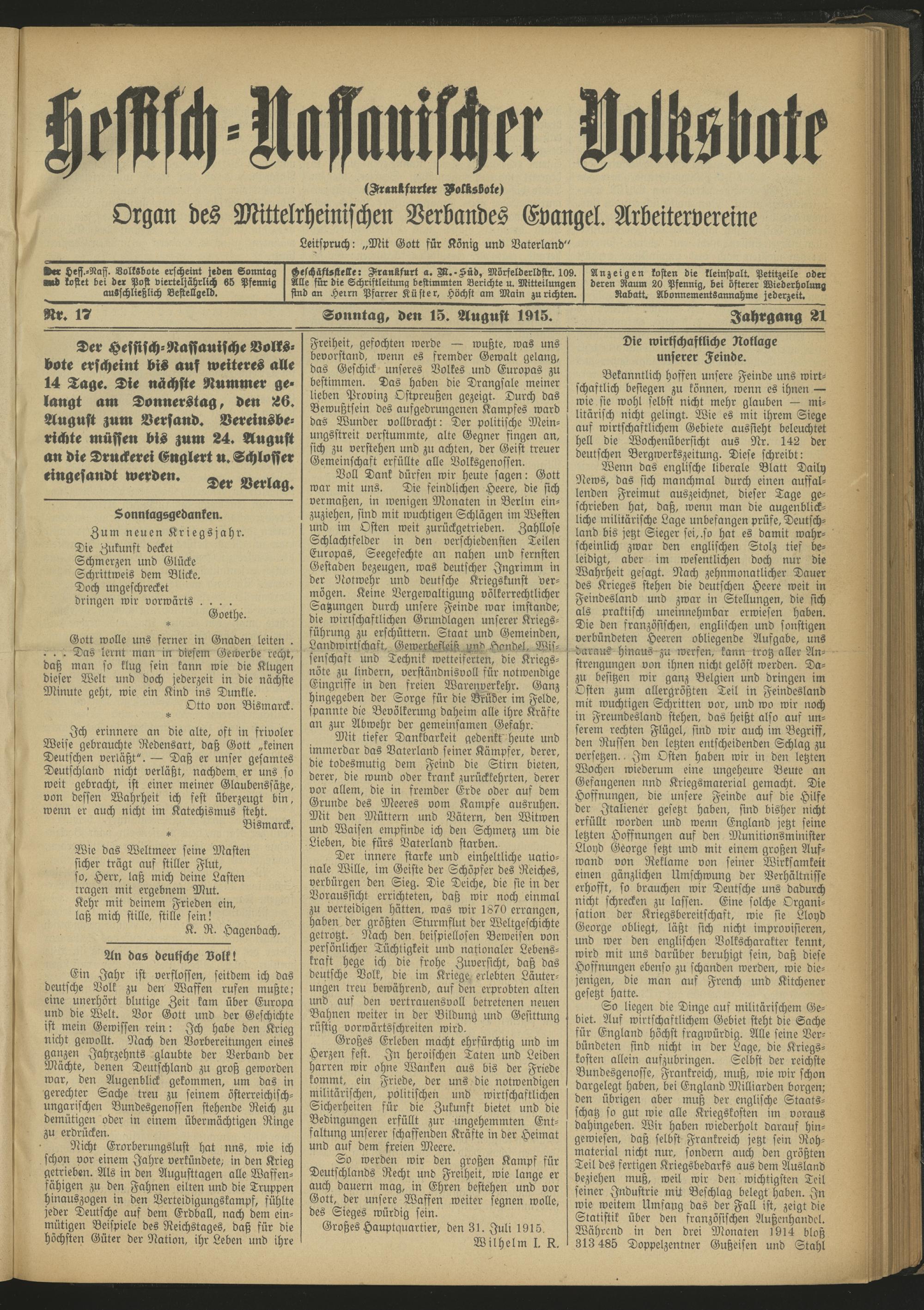 Regionale Zeitungen aus der Zeit des Ersten Weltkrieges