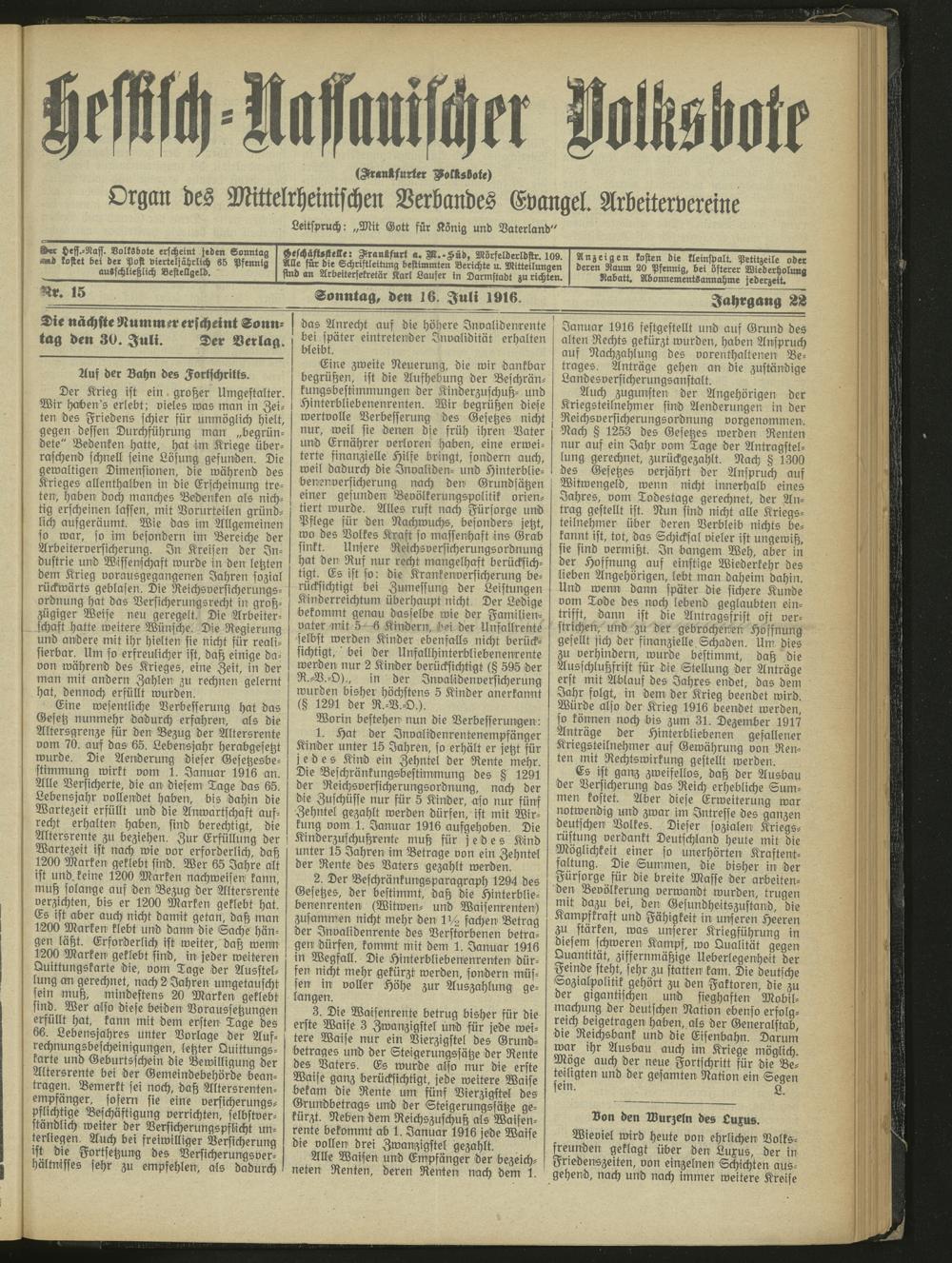 Regionale Zeitungen aus der Zeit des Ersten Weltkrieges