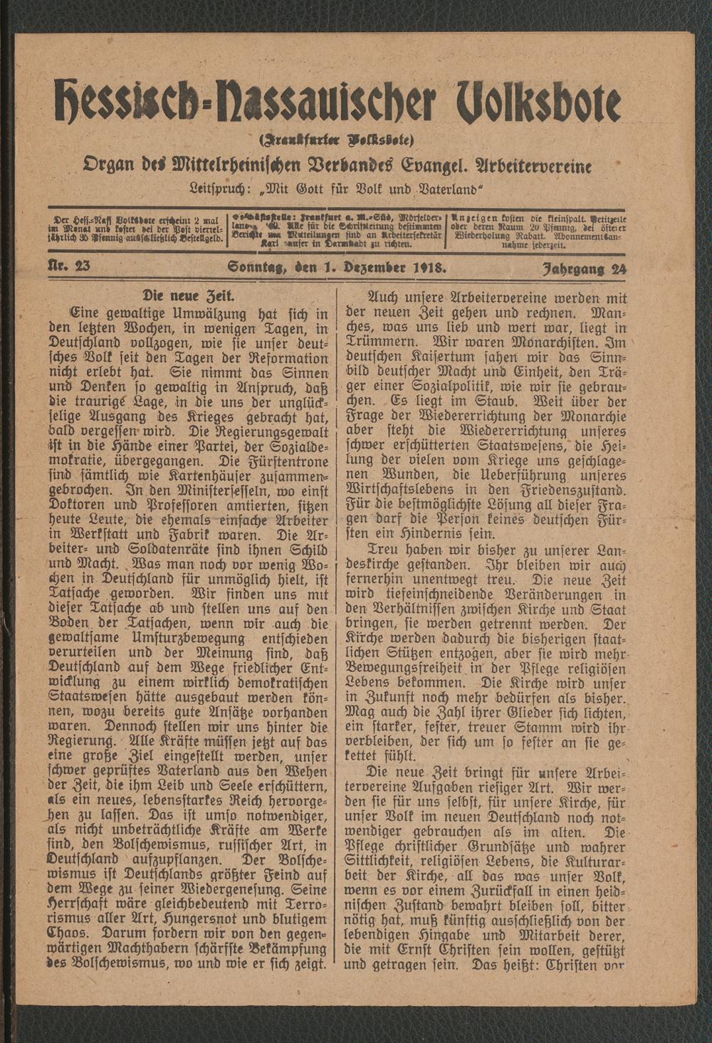 01.12.1918 = Nr. 23