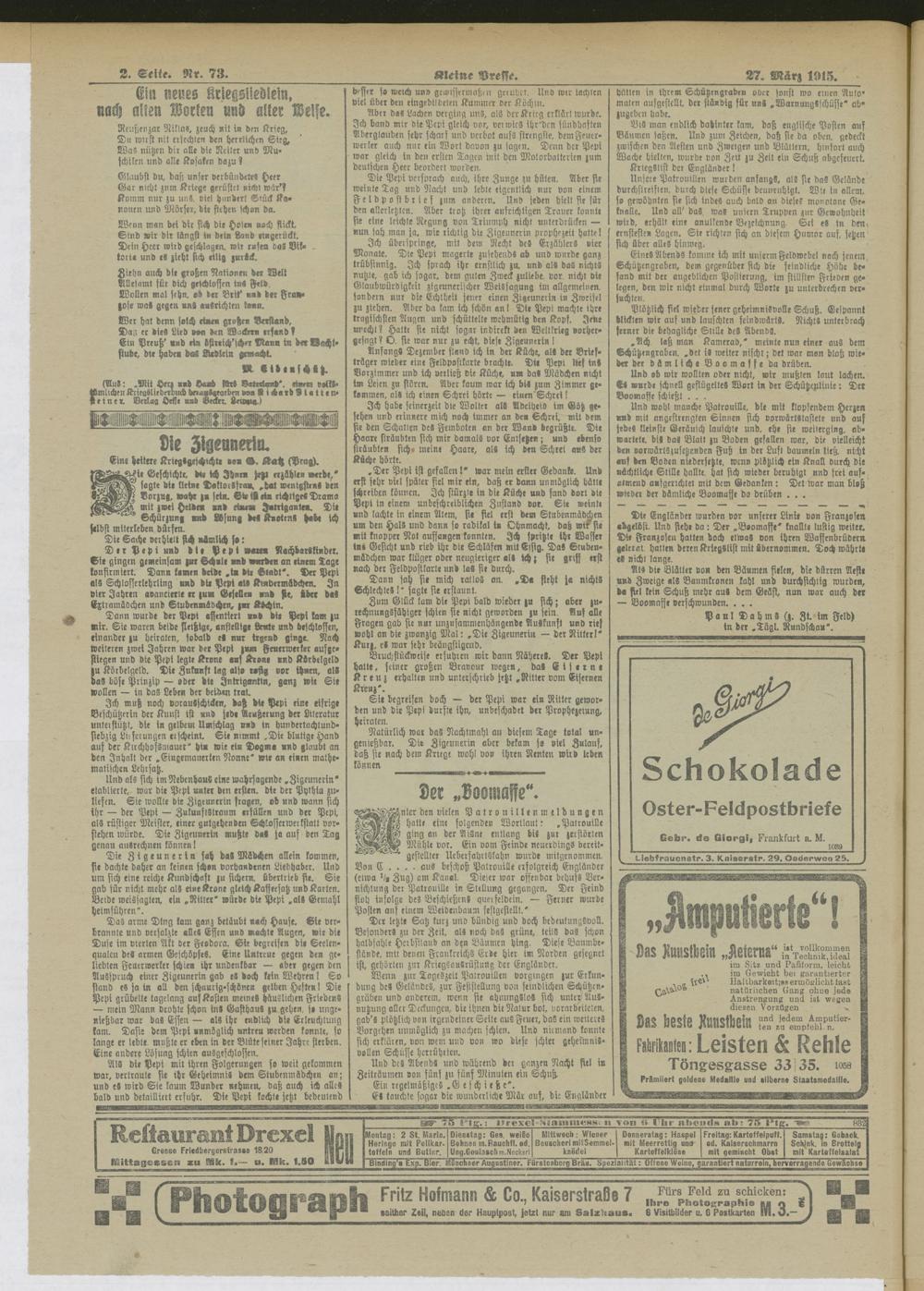 Regionale Zeitungen aus der Zeit des Ersten Weltkrieges