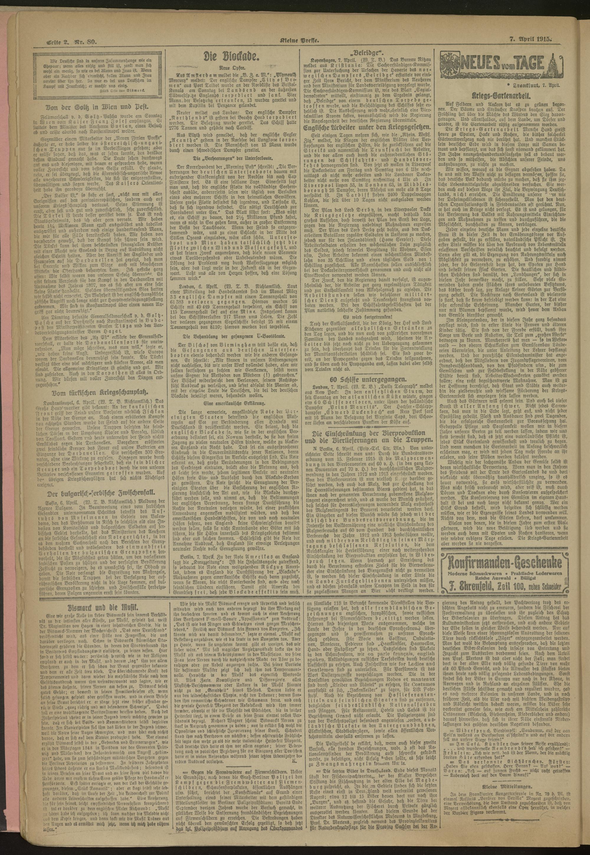 Regionale Zeitungen aus der Zeit des Ersten Weltkrieges
