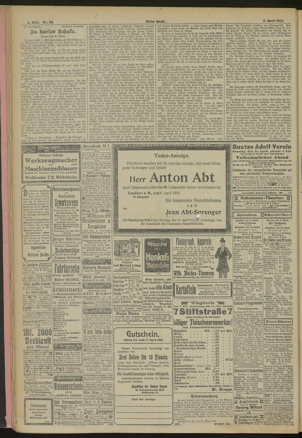 Regionale Zeitungen aus der Zeit des Ersten Weltkrieges