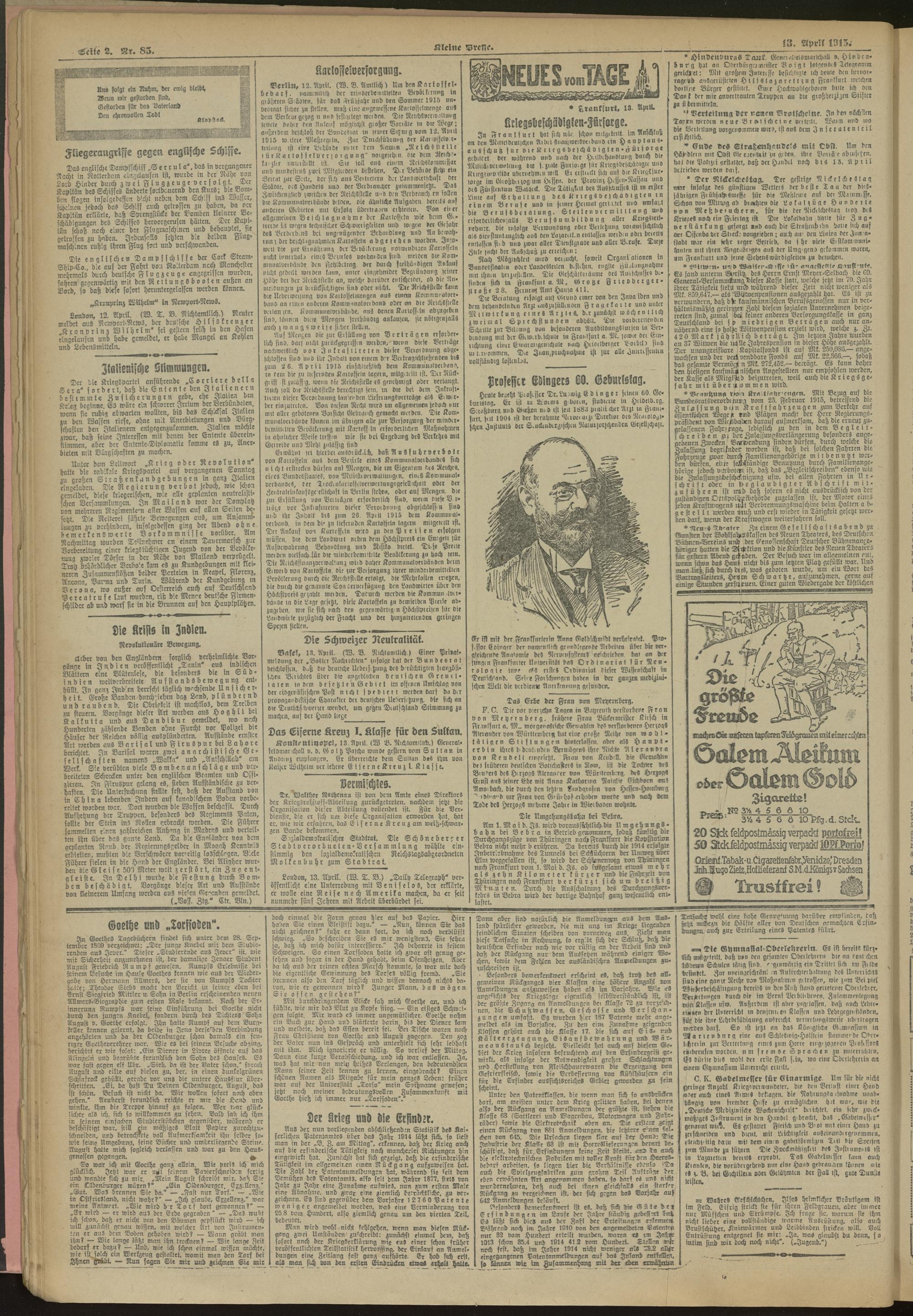 Regionale Zeitungen aus der Zeit des Ersten Weltkrieges