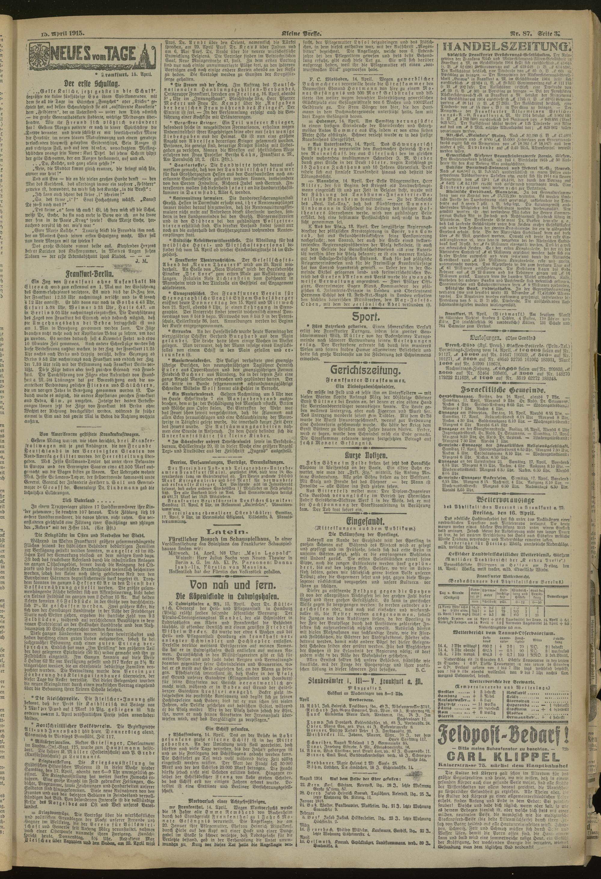 Regionale Zeitungen aus der Zeit des Ersten Weltkrieges
