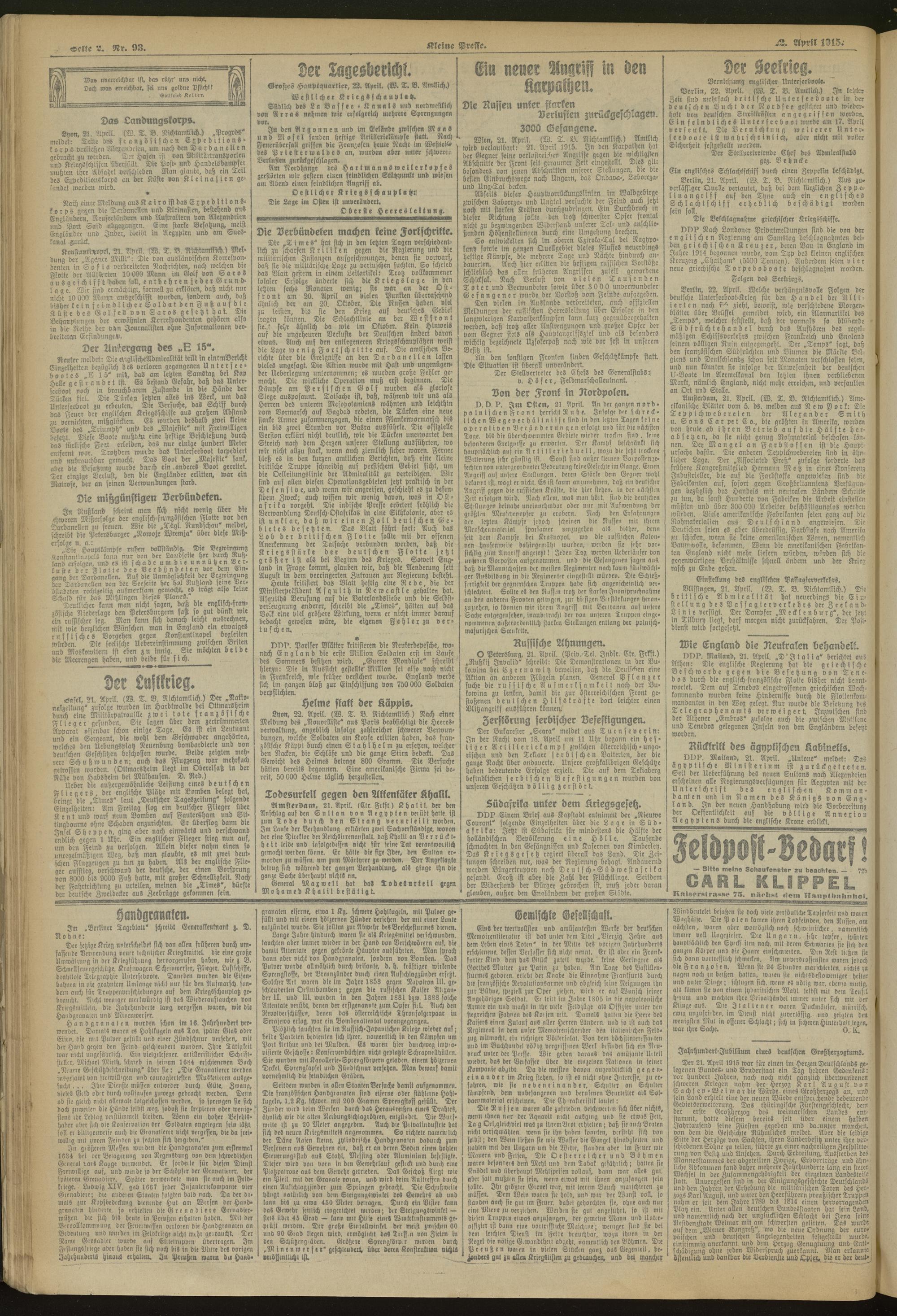 Regionale Zeitungen aus der Zeit des Ersten Weltkrieges
