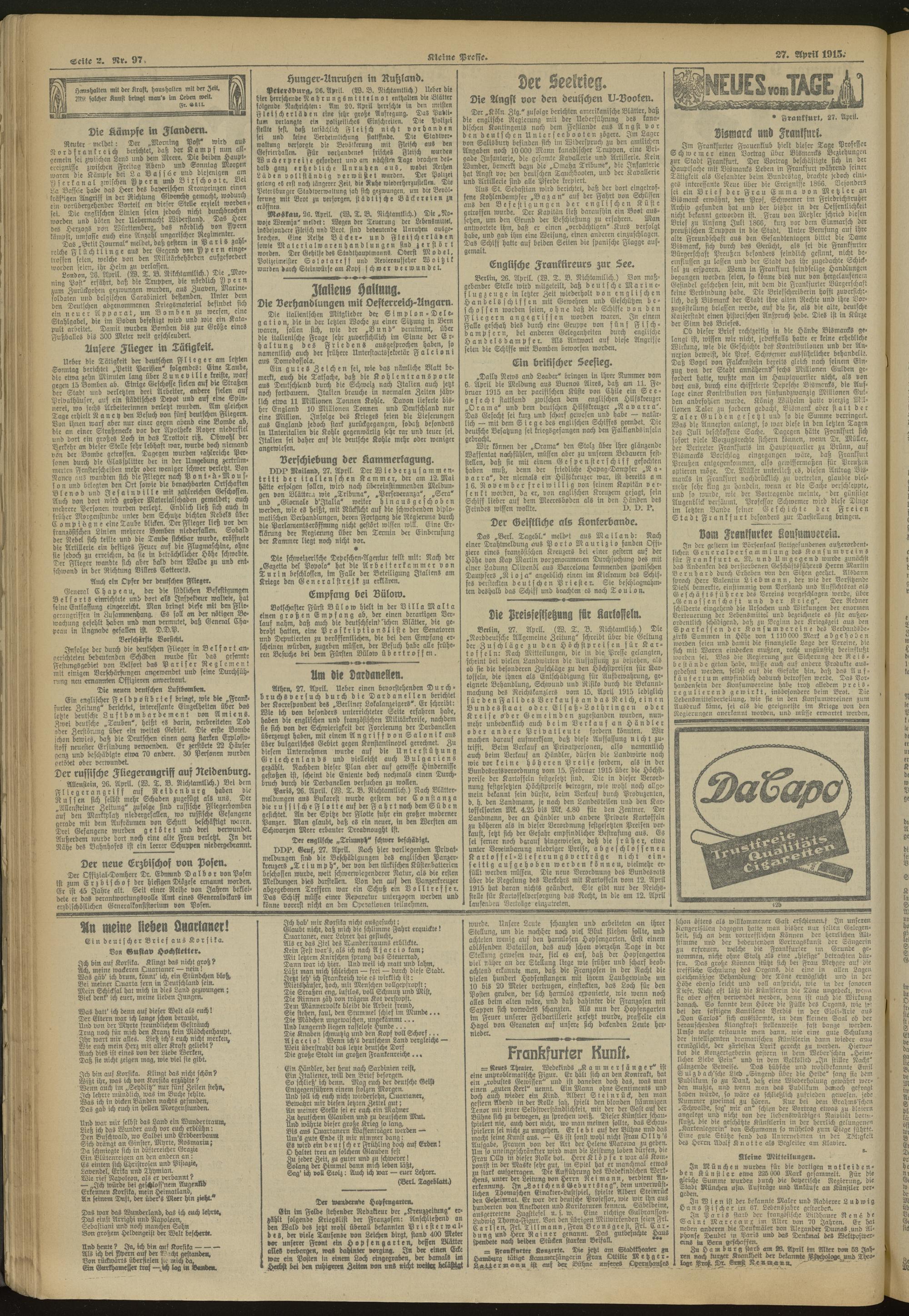Regionale Zeitungen aus der Zeit des Ersten Weltkrieges