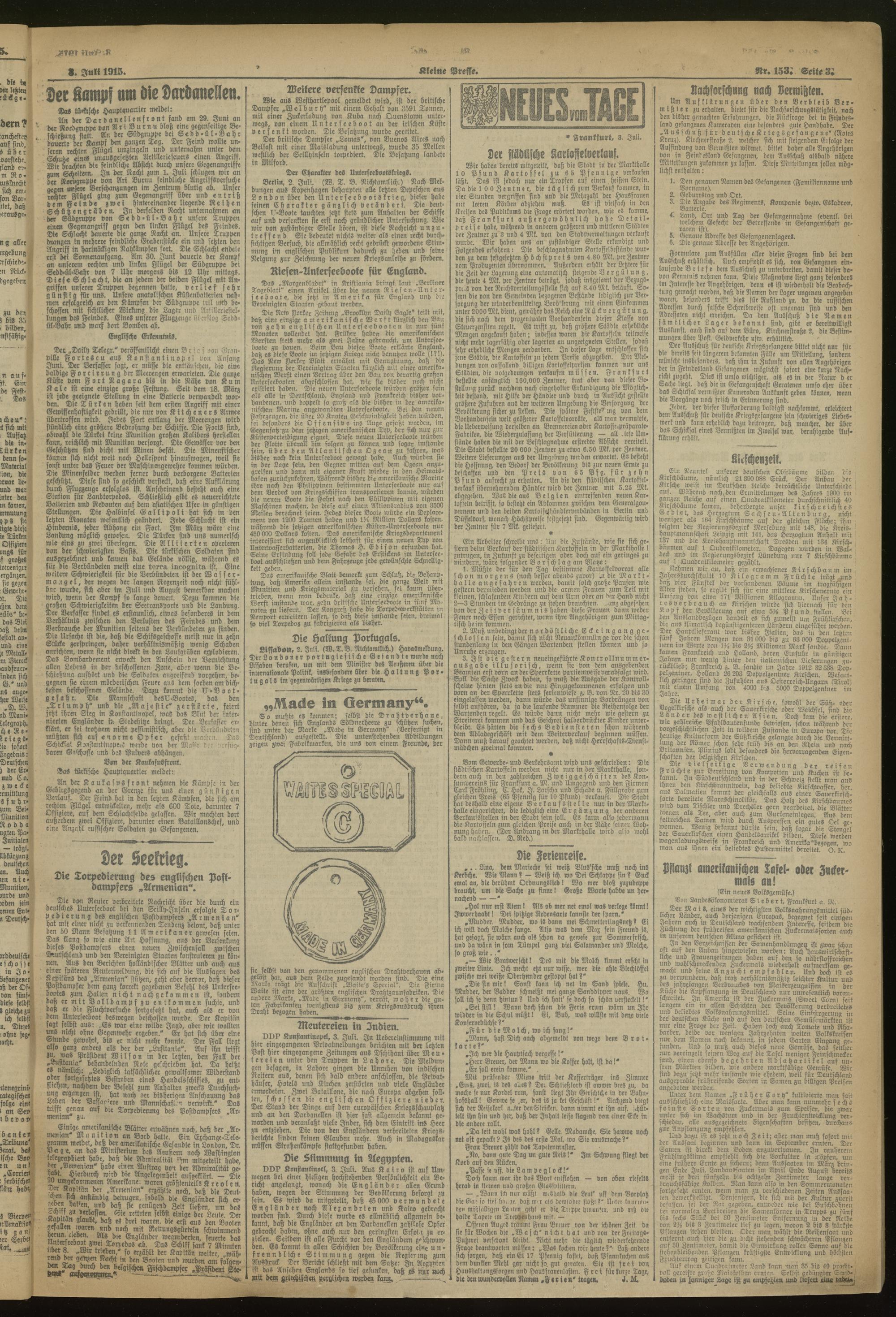 Regionale Zeitungen aus der Zeit des Ersten Weltkrieges