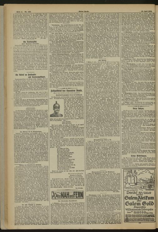 Regionale Zeitungen aus der Zeit des Ersten Weltkrieges