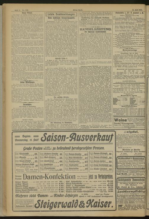 Regionale Zeitungen aus der Zeit des Ersten Weltkrieges