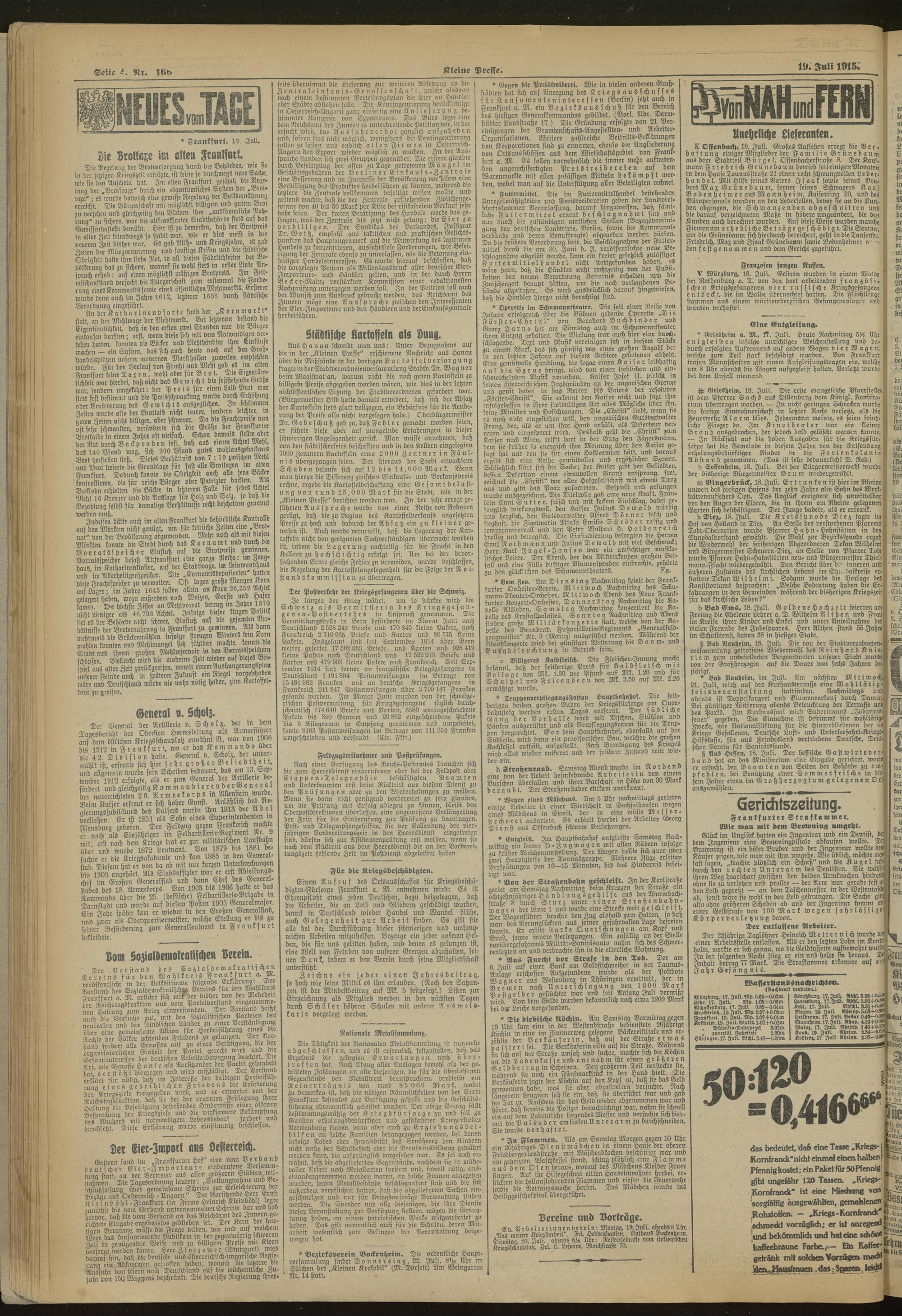 Regionale Zeitungen aus der Zeit des Ersten Weltkrieges