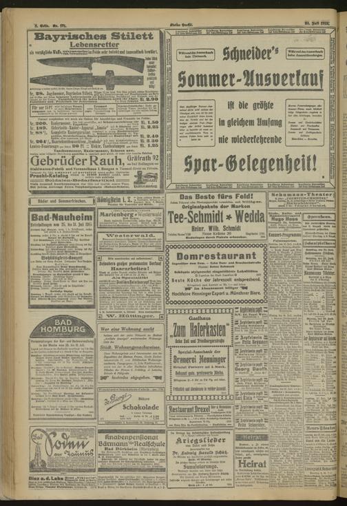 Regionale Zeitungen aus der Zeit des Ersten Weltkrieges