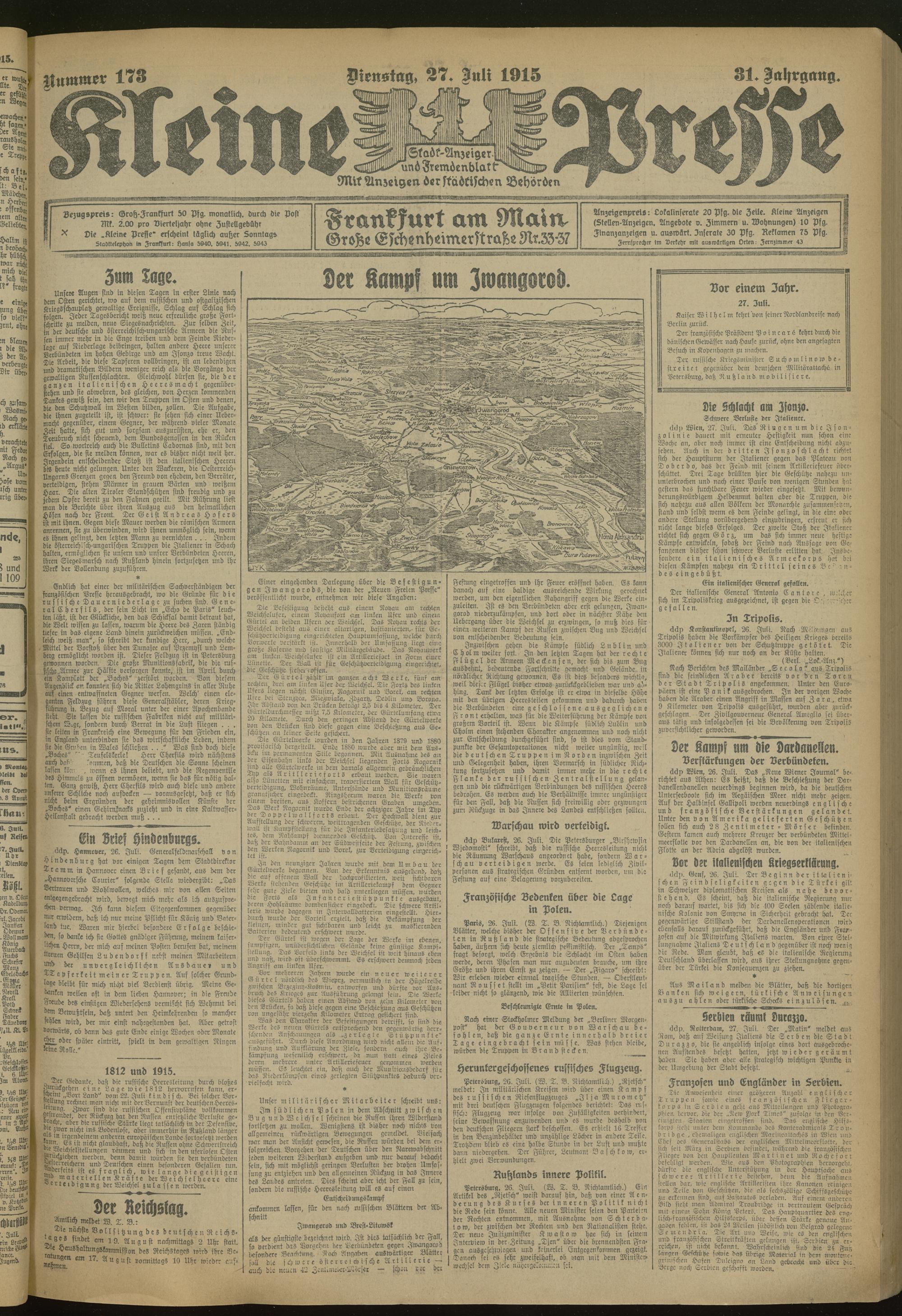 Regionale Zeitungen aus der Zeit des Ersten Weltkrieges
