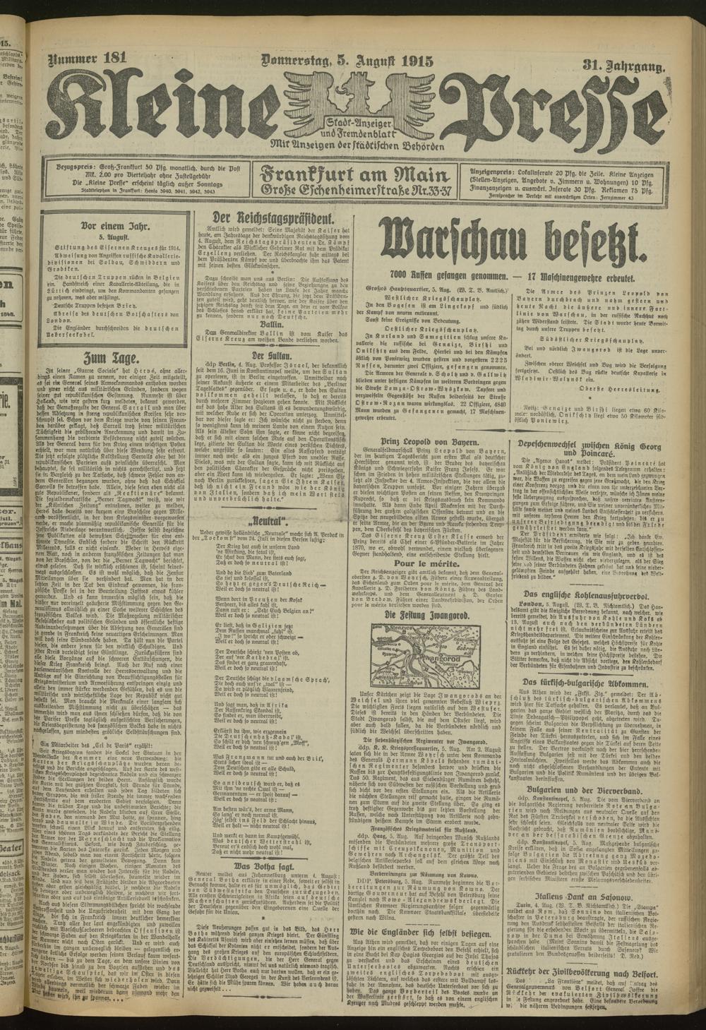 Regionale Zeitungen aus der Zeit des Ersten Weltkrieges