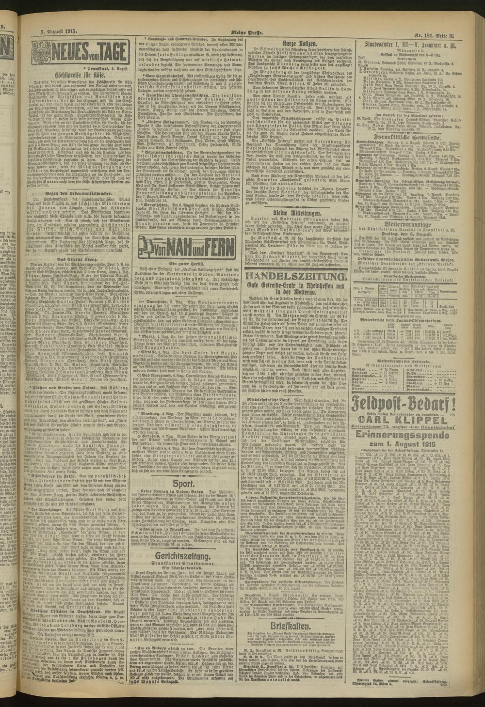 Regionale Zeitungen aus der Zeit des Ersten Weltkrieges