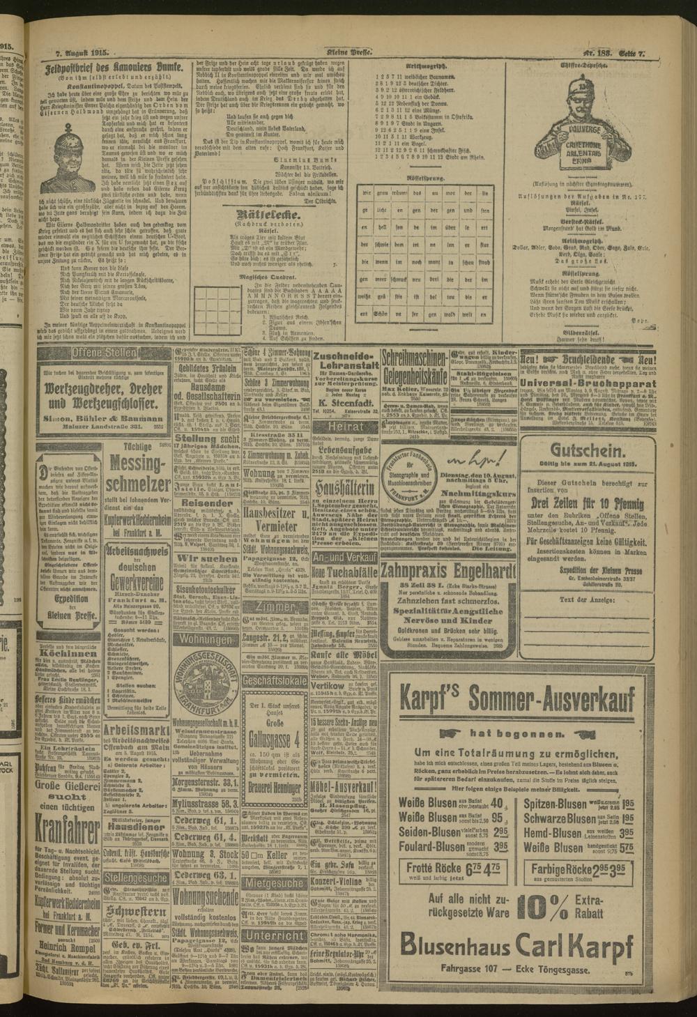 Regionale Zeitungen aus der Zeit des Ersten Weltkrieges