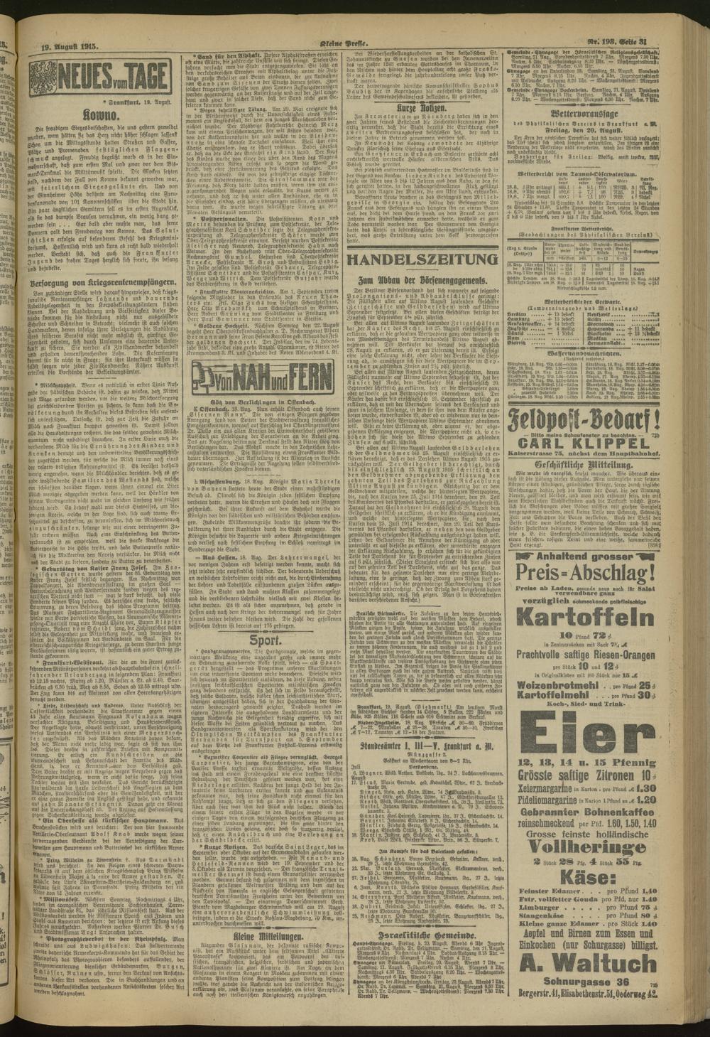 Regionale Zeitungen aus der Zeit des Ersten Weltkrieges